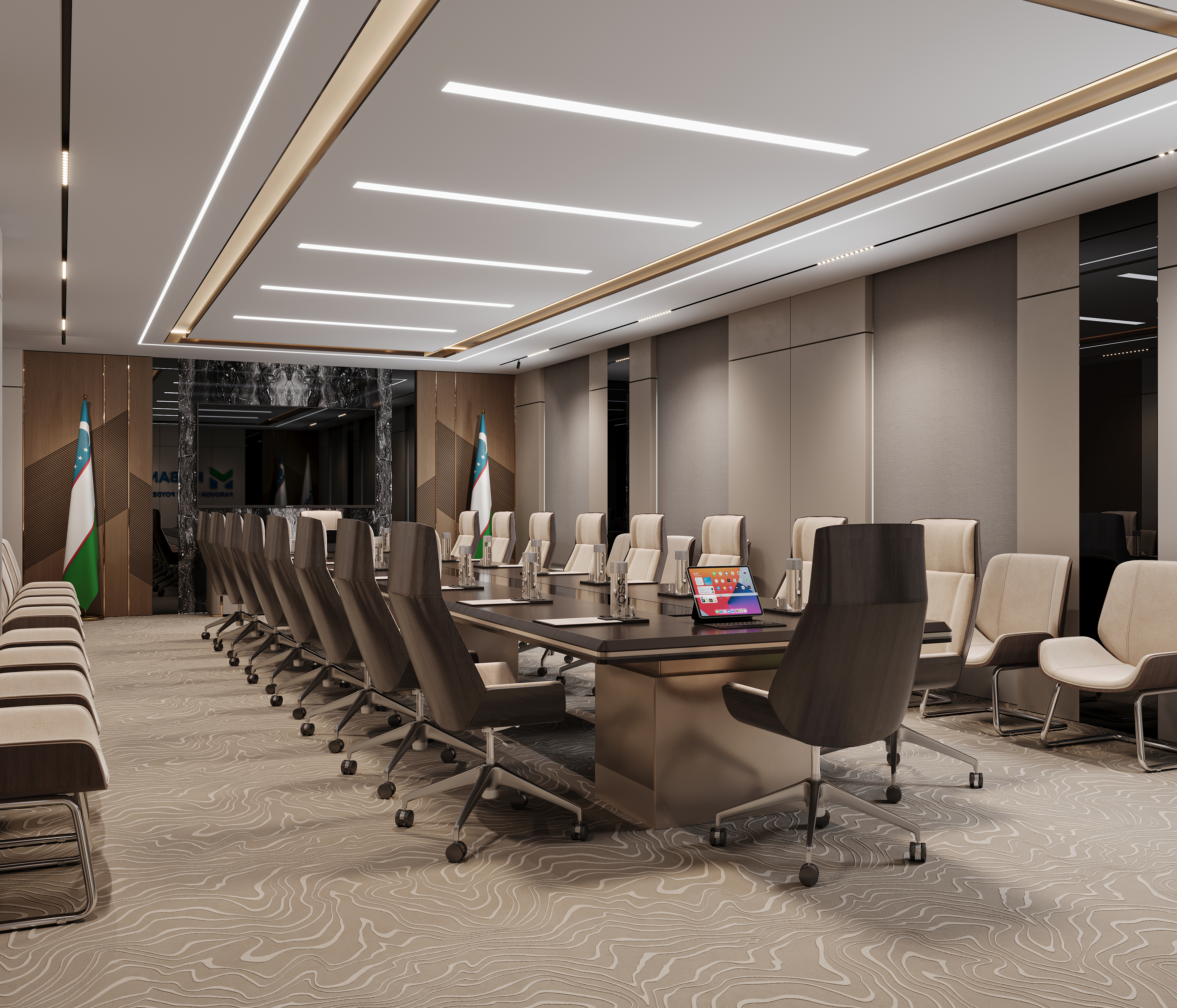 В жизни, конечно, стулья так идеально ровно не стоят 😊 Но в рендере они решили проявить дисциплину.