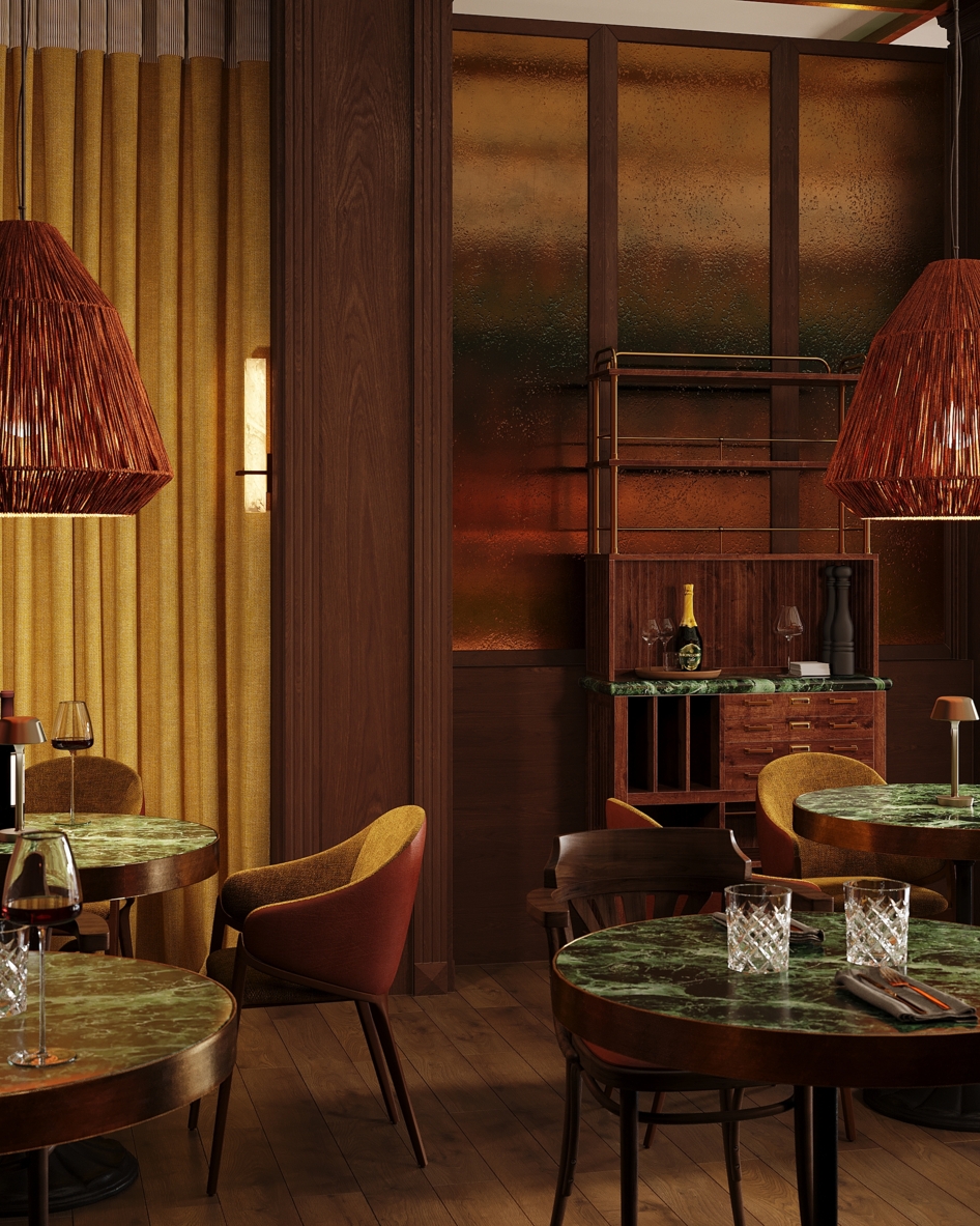 3д-визуализация винного ресторана, подробнее о проекте можно узнать на беханс)