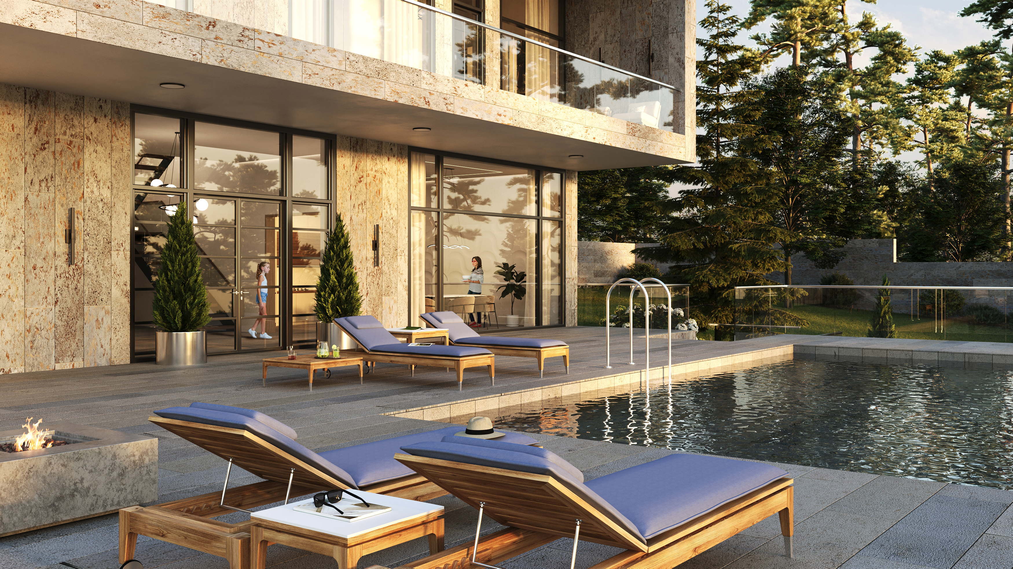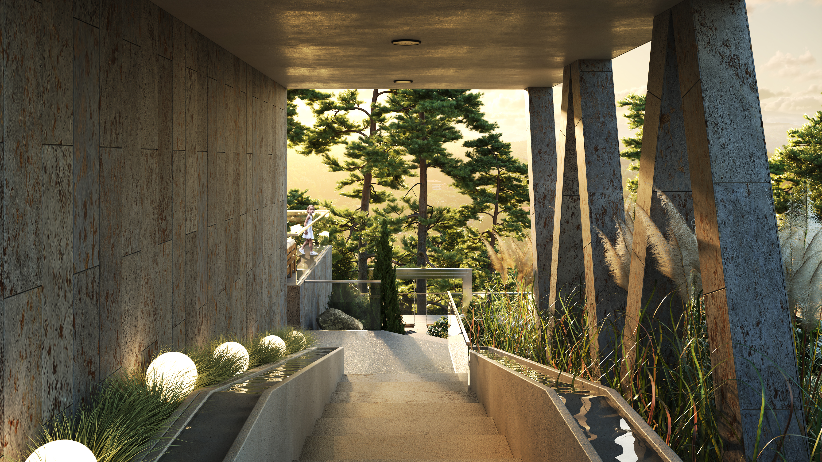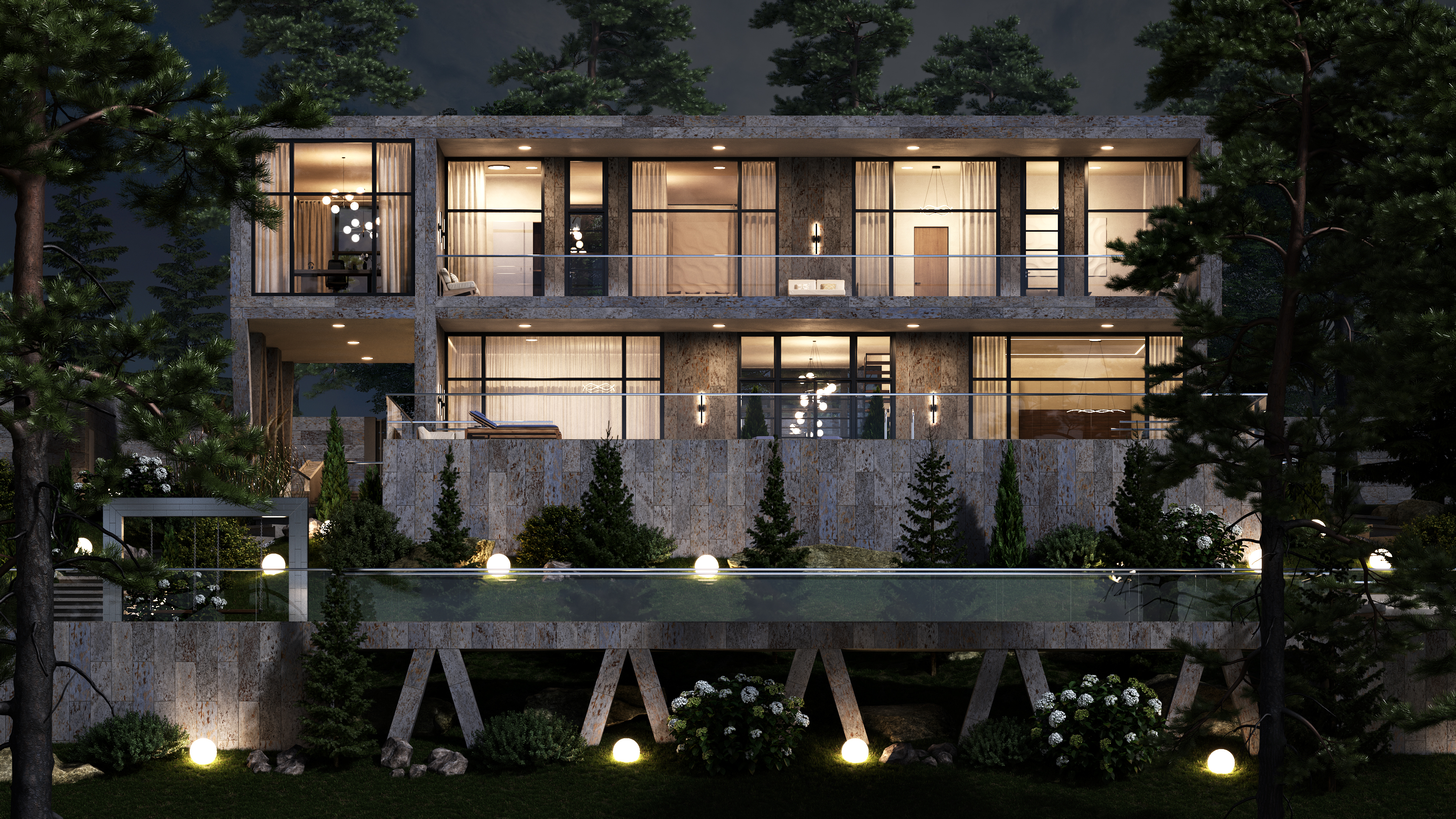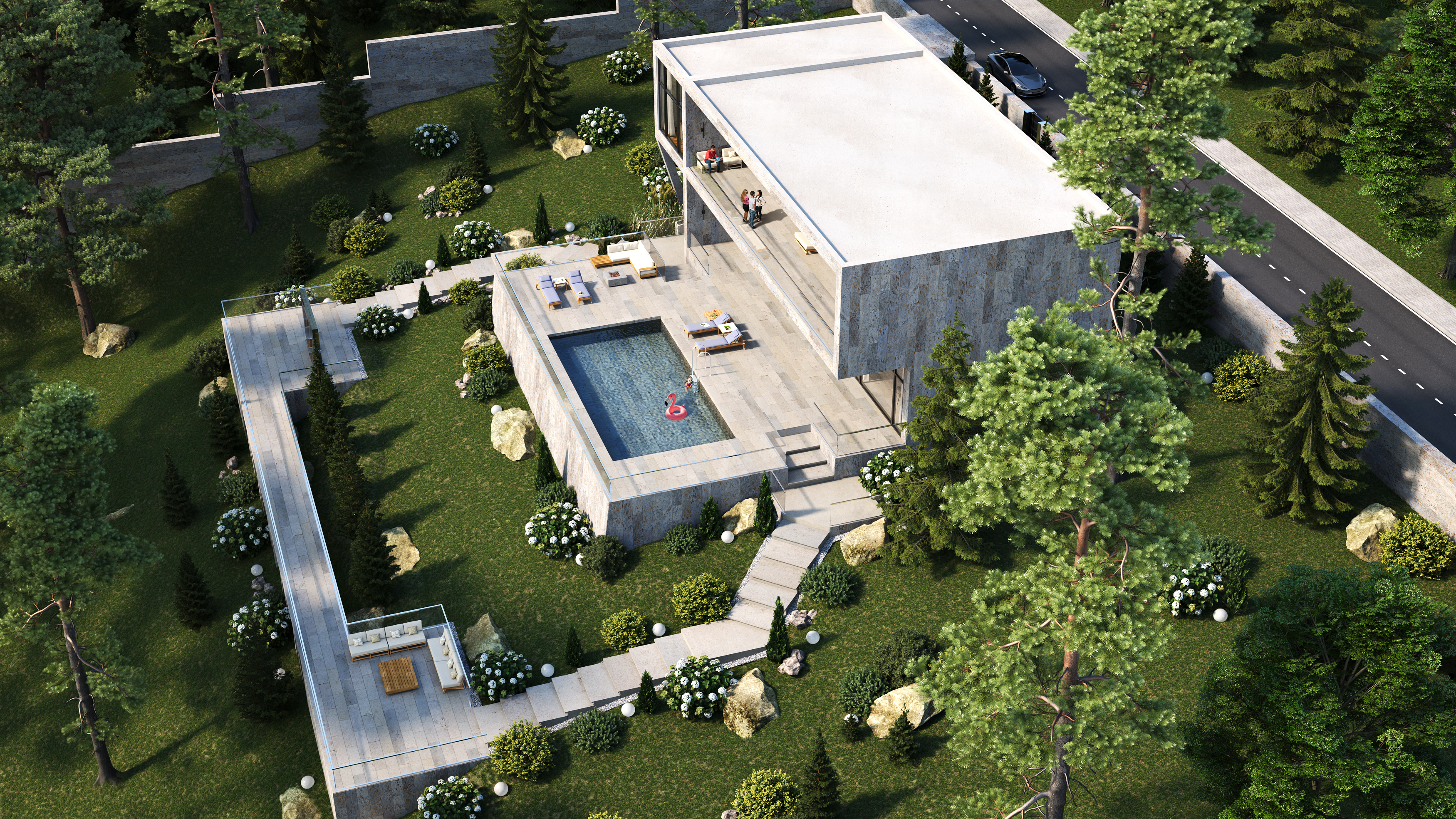 старайтесь в близких ракурсах прорабатывать детали. Такие как вода в желобах перильных. Там просто нойз, а хочется видеть настоящую физику, нереалистично выглядит. Люди за окнами слишком четкие. Стекло и само отражение , должно их приглушать. Я бы вид сверху, вообще бы убрал из портфолио, не очень смотрится. В целом не плохо.