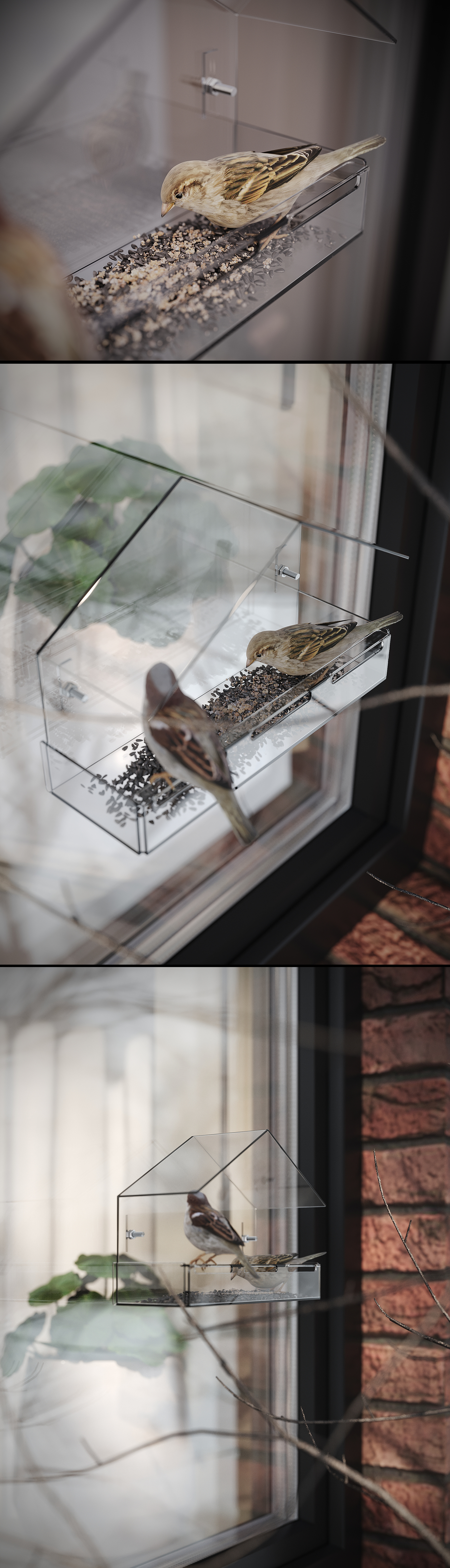 болт заложен в прямоугольную пластину пластина крепится к стеклу на двухсторонний скотч и насколько я понял может спокойно выдержать 10л бутыль подвешенную на него ,во всяком случае так уверяет производитель, далее через болт продевается кормушка и затягивается гайкой, ничего сверлить в стеклопакете не надо, если говорить об эстетической части, то да, наверно это можно было решить более изящно, тут согласен)