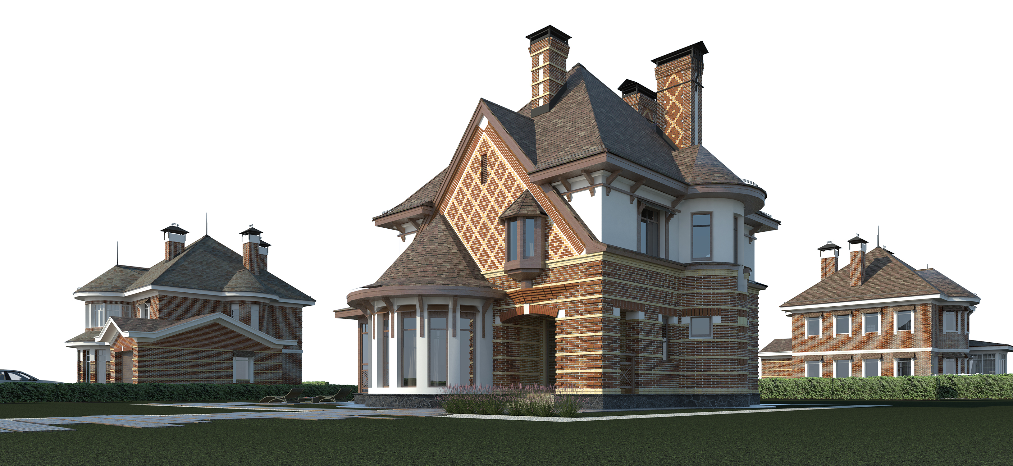Задача была сделать из сырого рендера визуализацию для сайта продаж проектов коттеджей. Работа выполнена в фотошопе.