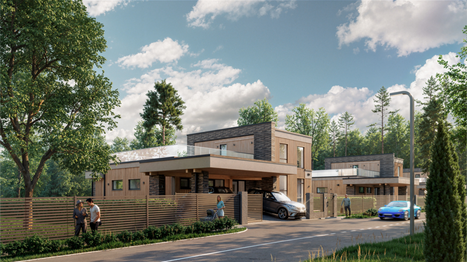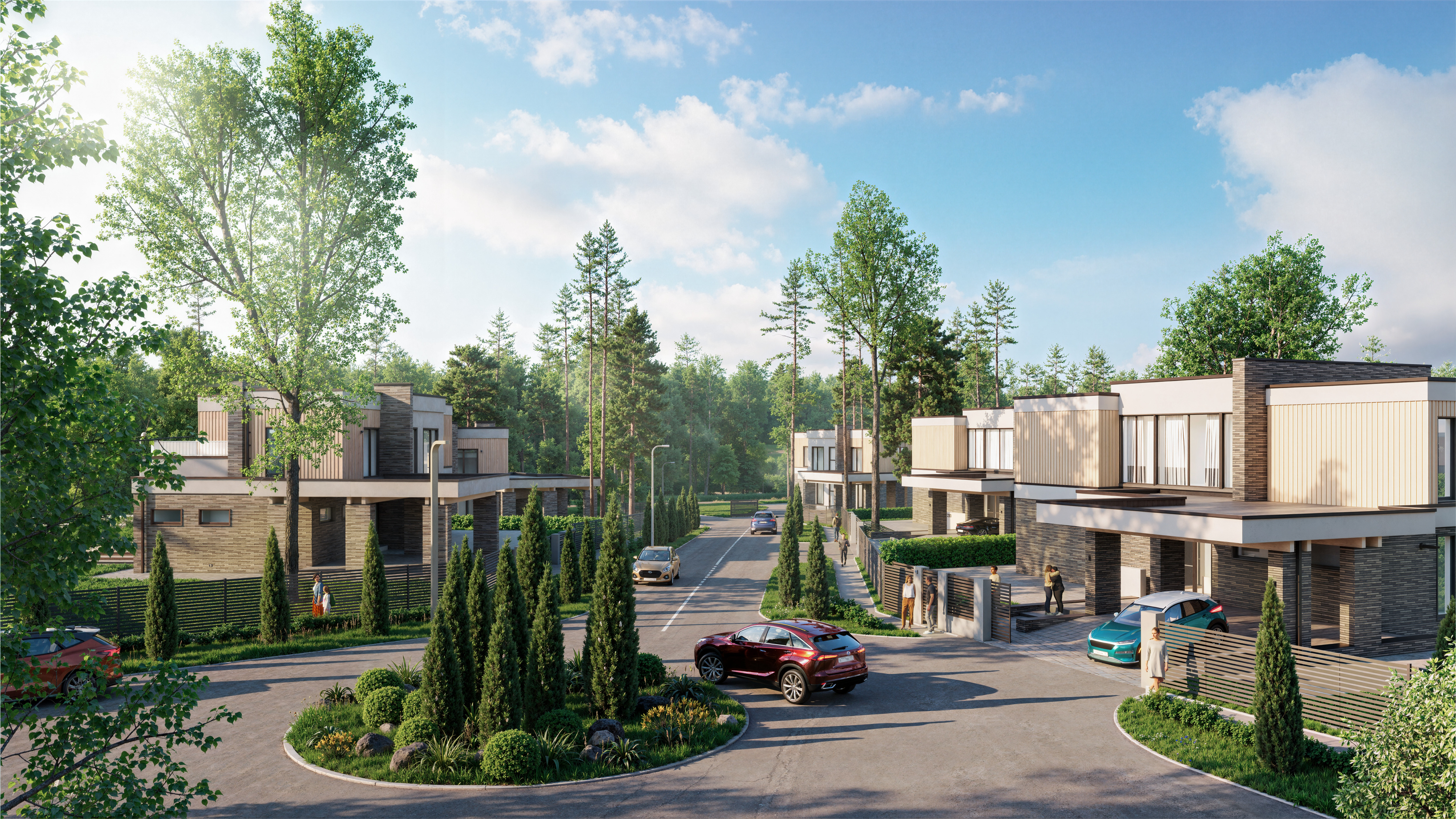 Визуализация коттеджного поселка "Лазурный Мыс" в Ленинградской области. Срок выполнения: 30 дней. Инструменты: 3DsMAX, Corona, Ps, Nano Banano PRO