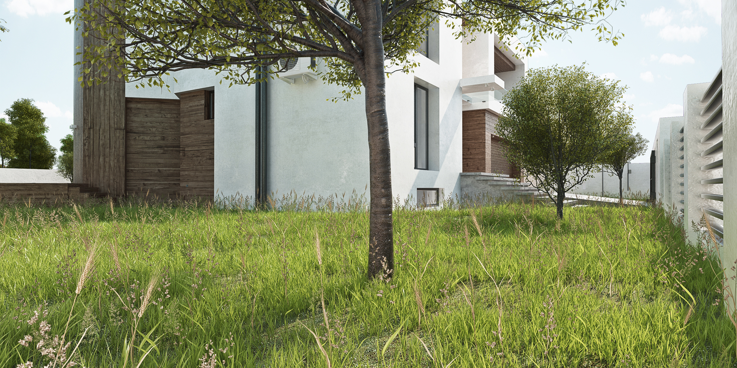 траву нет необходимости показывать с колосками ибо это говорит о неухоженности газонов либо участок запущен.
