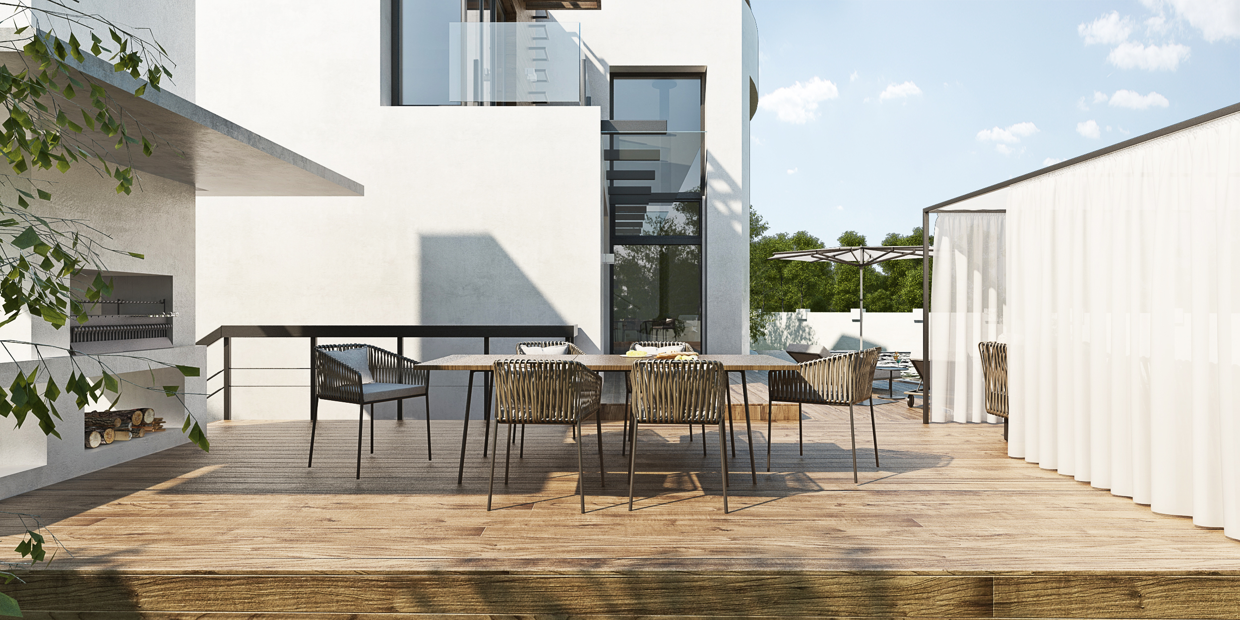 CeBeP_2012: все верно заметили, только летают два стула (в торцах стола), все остальные стоят на террасе. Летают потому что ветер так на них влияет. Листья так же особый сорт фруктовых деревьев. а шум скорее всего из за качества вашего экрана.