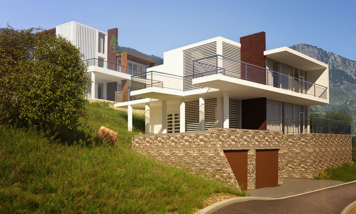 большой куст слева закрывает второй дом, может если бы его в левый нижний угол перенести было бы лучше.