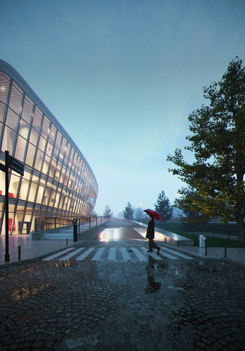 Конгресс центр в Кракове. Некоммерческая работа. Модель была сделана по панорамам в 2019-м году, в 2024-м дошли руки сделать рендер. К концу 2025-го решил поделиться в галерее.