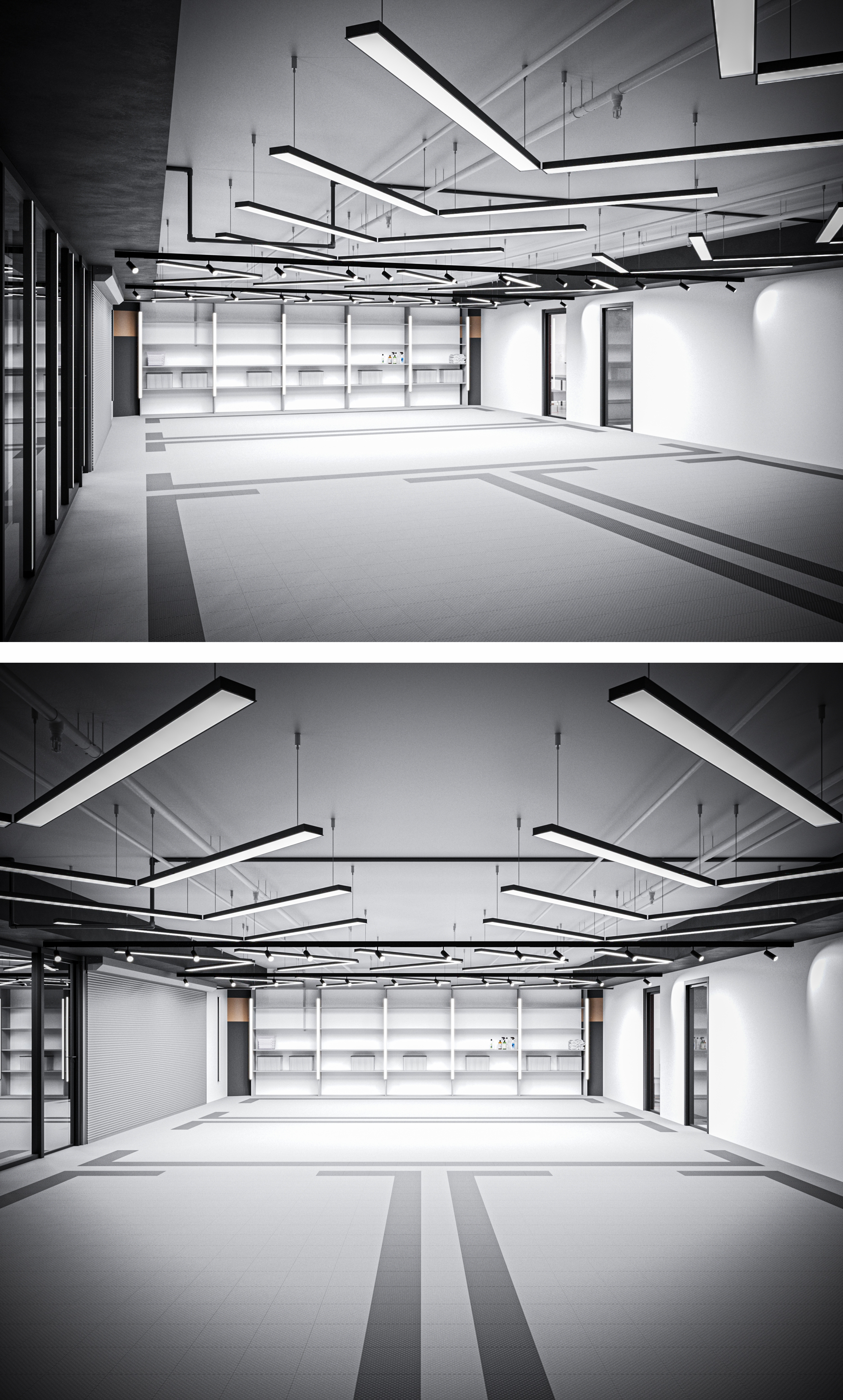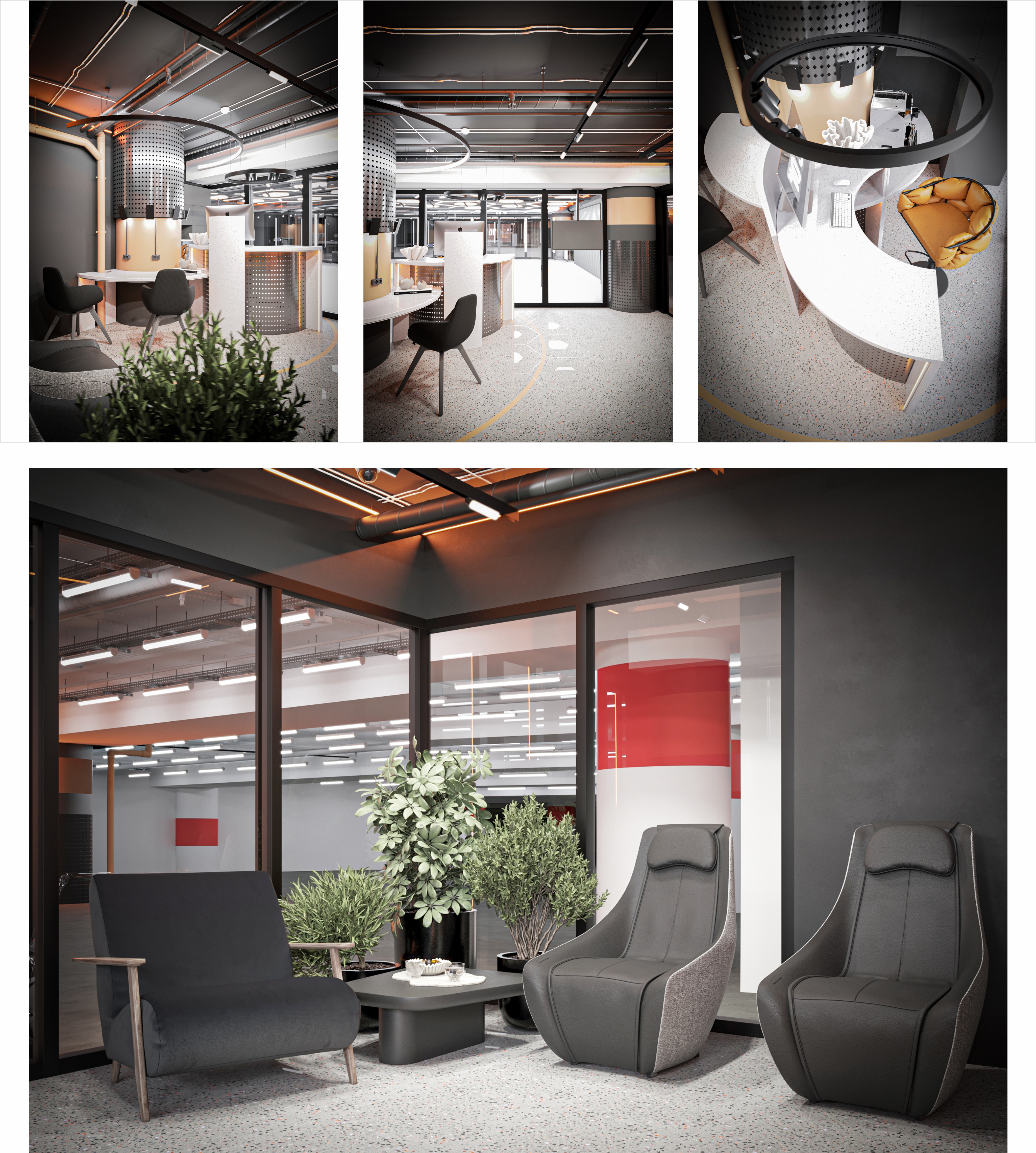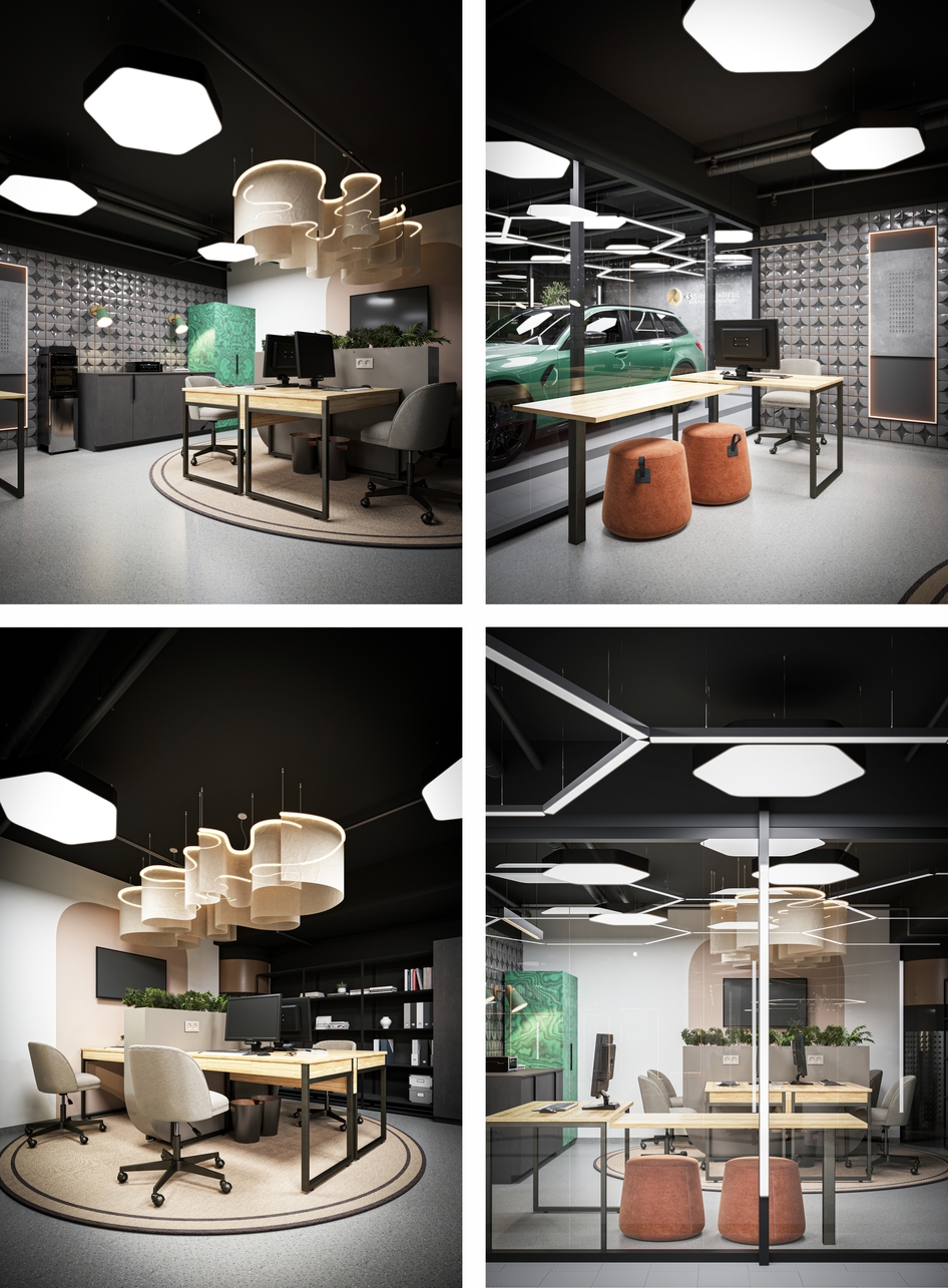 Проект KS AUTOHOUSE стал одним из самых заметных кейсов на рынке детейлинга Санкт-Петербурга. Локация: центр Санкт-Петербурга, ТЦ ТК «Невский Центр», паркинг-этаж P2.Проект запустился в 2022 г. и в 2023–2024 гг. KS AUTOHOUSE расширил зоны детейлинга и клиентской. Дополнительно было арендовано ~389 м² KS AUTOHOUSE предлагает не просто уход за автомобилем, а полное сопровождение владельца: от мойки и полировки до персонального консьерж-сервиса. Медийная составляющая усилилась благодаря сотрудничеству с блогером Булкиным, который стал амбассадором бренда. Это дало KS AUTOHOUSE узнаваемость в digital-среде, приток клиентов из автомобильного комьюнити и статус «детейлинг-центра нового поколения».В дизайне интерьера отражена философия бренда: чистота, технологичность, престиж. Офис и демонстрационная зона построены на контрасте индустриальной среды и ощущения уюта: тёплый свет, зелёные акценты, сухие текстуры и архитектурная строгость создают атмосферу доверия и премиальности. Так как помещение лишено естественного света, зелёные акценты стали ключевым приёмом. Они компенсируют отсутствие природы, вносят ощущение свежести, смягчая технологичную атмосферу пространства. Живая зелень превращает индустриальный бокс в комфортную и визуально тёплую среду для клиентов и сотрудников. Заказчик самостоятельно подбирал цвета без авторского надзора, поэтому предпочтение было отдано нейтральным, безопасным оттенкам — серому, графитовому и белому. Такой монохромный диапазон не только универсален, но и оптимален для работы с автомобилями: он не создаёт лишних бликов и отражений на кузове, не искажает восприятие цвета лакокрасочного покрытия. Кроме того, интерьер регулярно становится фоном для фото- и видеосъёмки контента детейлинг-центра, поэтому исключены яркие и пёстрые текстуры. Нейтральная палитра подчёркивает чистоту и точность формы автомобиля, сохраняя визуальный фокус на главном объекте — самом автомобиле. В процессе реализации владельцы внесли ряд изменений. Вместо запланированных кожаных кресел Egg Chair в клиентской зоне установлены массажные кресла для посетителей. На территории консьерж-сервиса есть небольшой кабинет для директора и менеджеров. Версия кабинета, представленная на сайте, отличается от реализованного объекта и отражает скорее концепцию, показывающую потенциал помещения.
