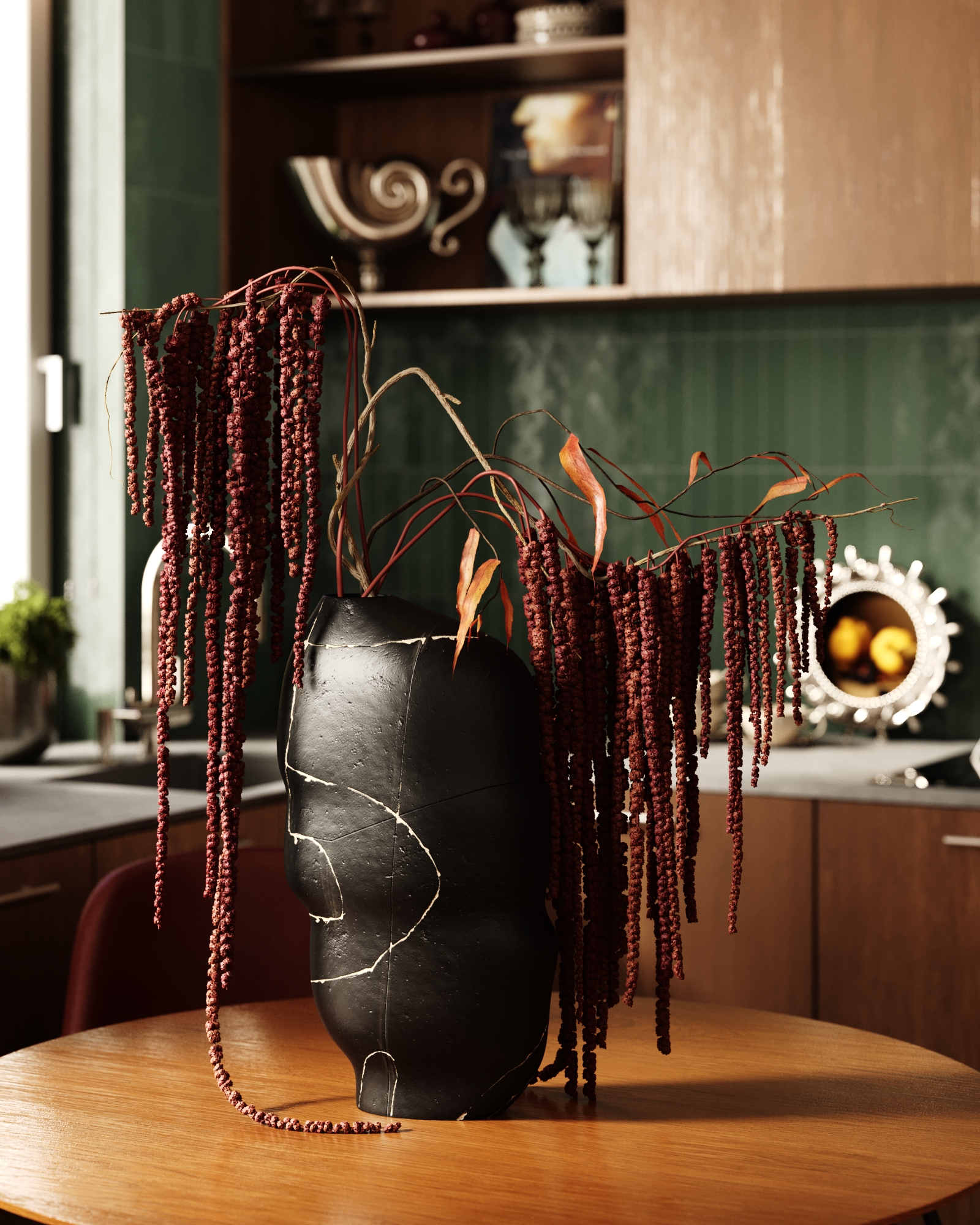 Амарант двух видов ( зеленый и бордовый) в вазе Gordon Baldwin