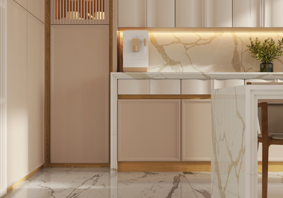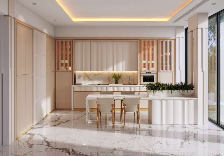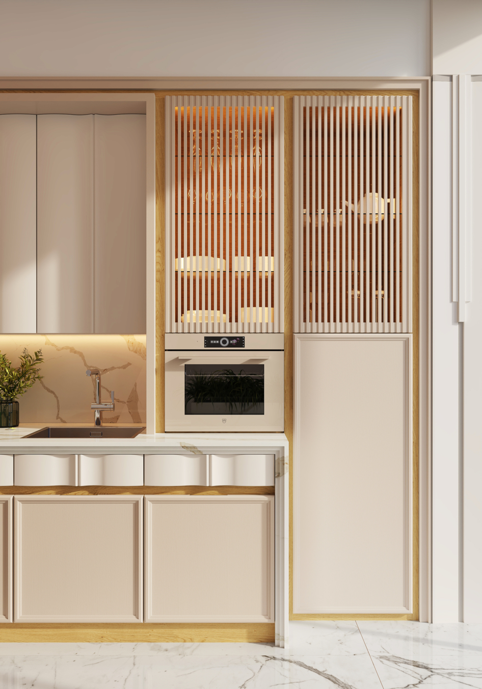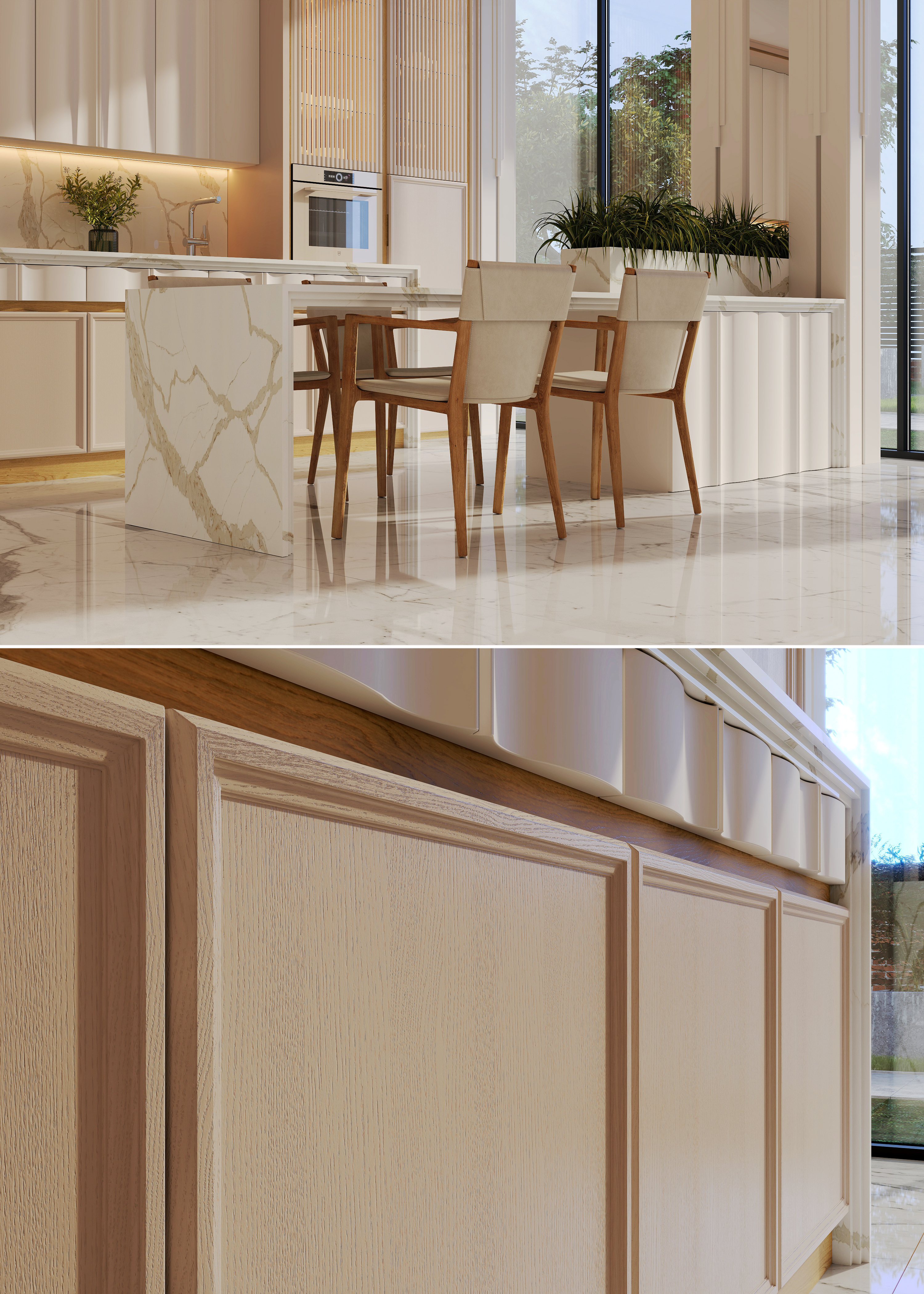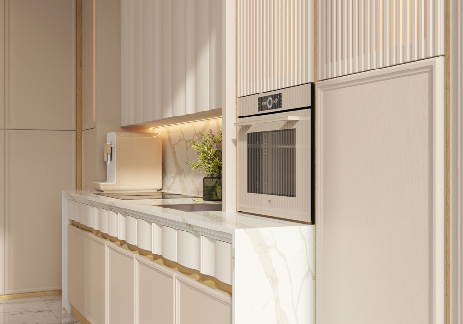 Солнечно, нежно, красивая работа) Фасады у кухни интересные.