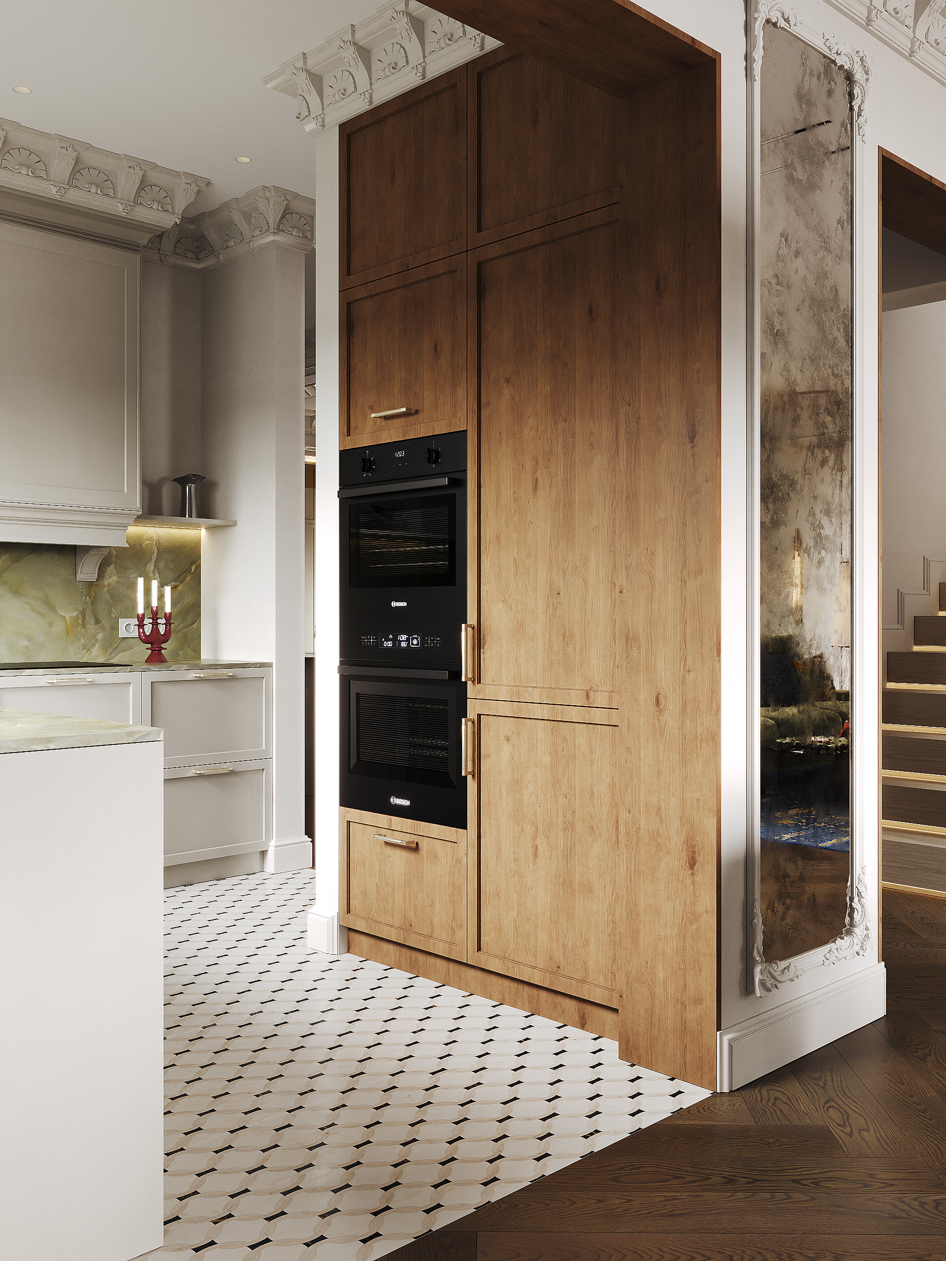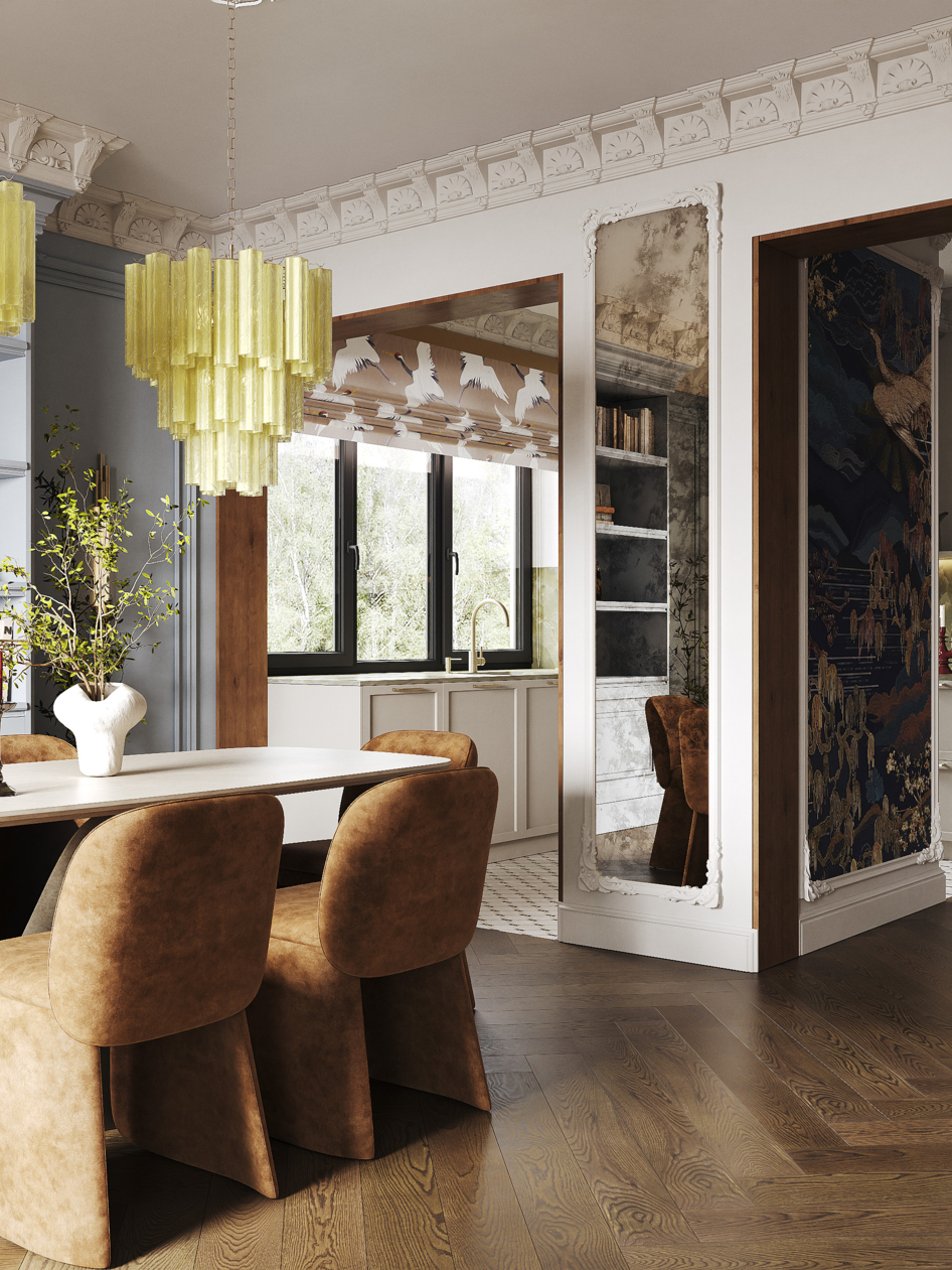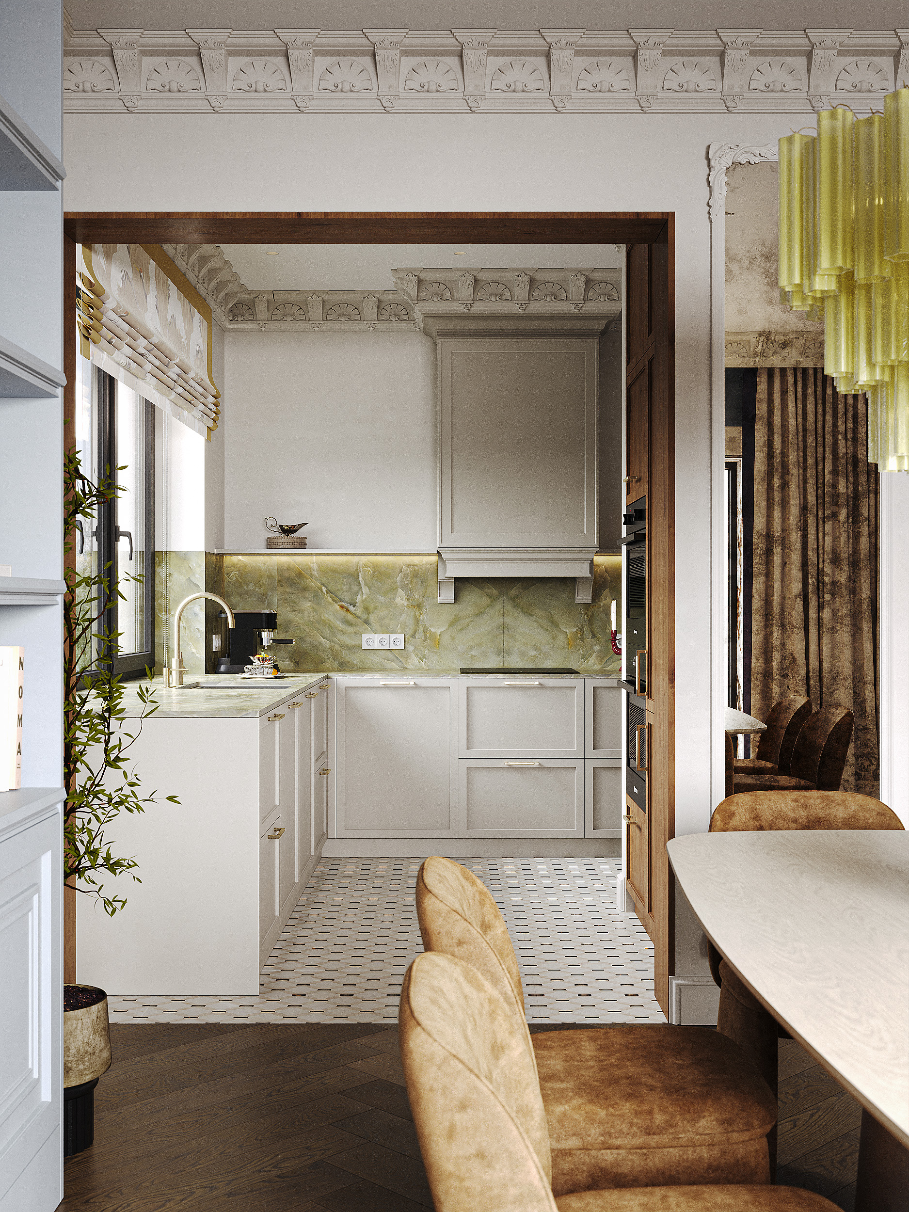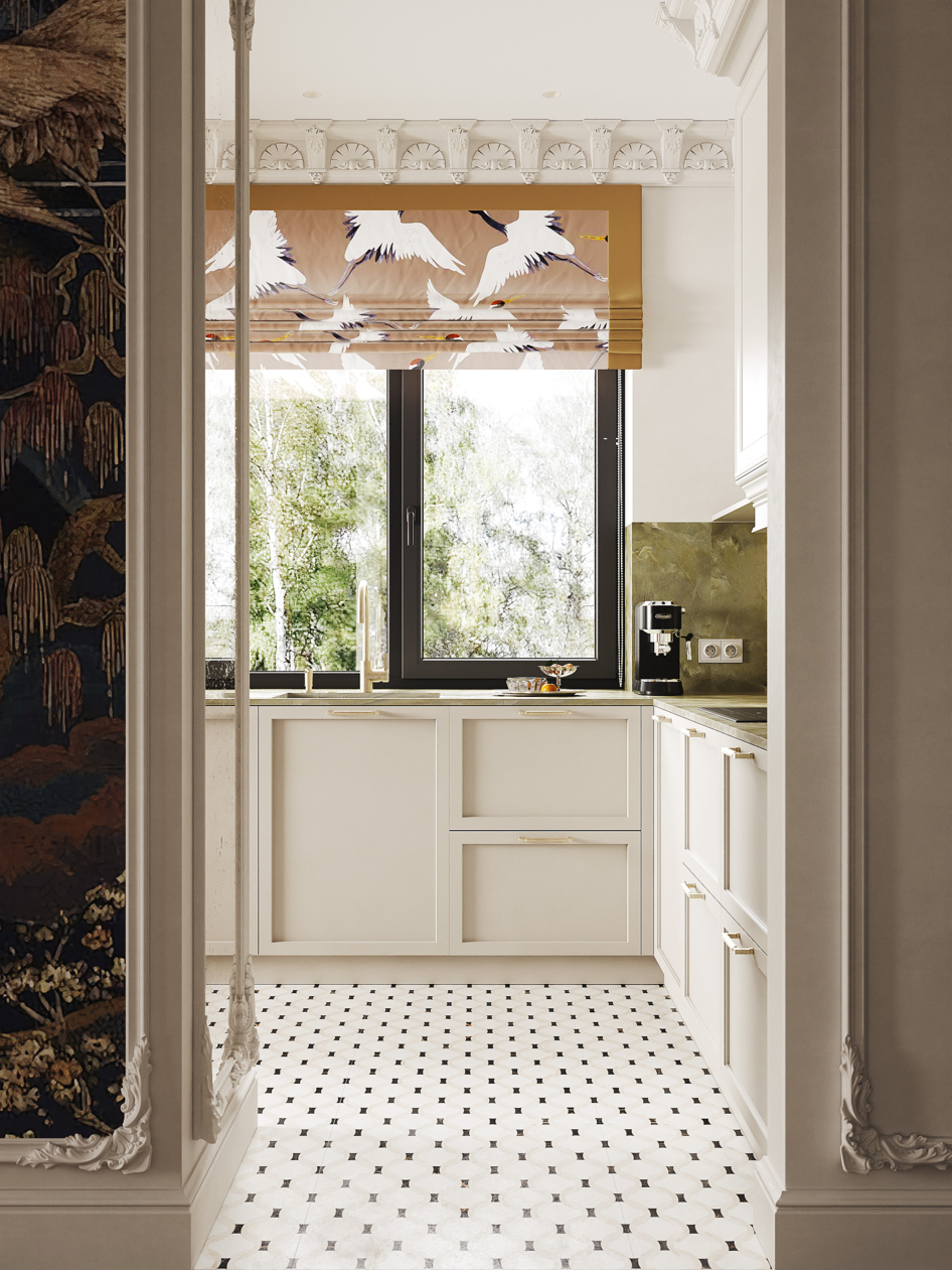 Кухня-гостиная современная классика. Визуализация дома в г. Черняховск 1 этаж