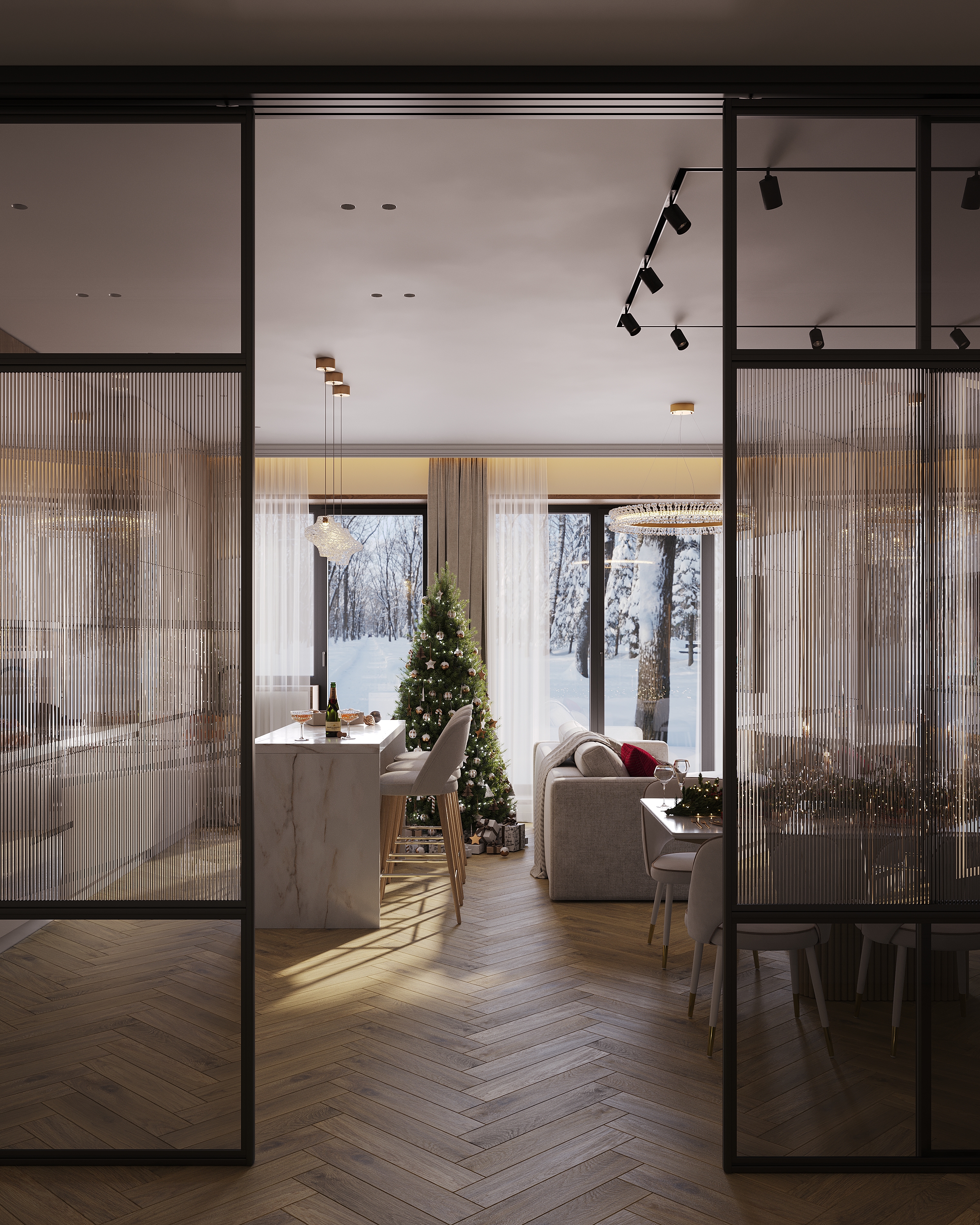 Я пишу то, что думаю по поводу дизайна. Здесь достаточно места для выхода, прохода и т.д. А вот для 3 стульев -явно недостаточно 1800. Можно , но неудобно. Смотрится он слишком маленьким с учетом размеров комнаты. И это мое мнение- если вы не согласны- ваше право. Не надо так злобно и амбициозно реагировать на критику. Он слишком маленький и непропорционален помещению. Телевизор слишком близко к дивану и высоко. Это уж если вы хотите все эргономично, чтобы было. И света неимоверно много для этого помещения. Стаканы в треке( количество вы понимаете сколько света будет давать?) И вопрос- зачем, ведь это даже некрасиво.. Люстра, точки , подвесы. Понятно, что это световые сценарии. Но их слишком много для данного помещения. Трек с таким бешеным количеством стаканов- это просто безвкусный перебор. Конечно, я понимаю, возможно это все пожелание заказчика. Но это мне не мешает говорить здесь то, что считаю нужным. И рассказывать мне о том, как все тут суперски продумано, не стоит. У меня 20 лет опыта в дизайне интерьера. Я не пишу, как вы выражаетесь, чтобы просто написать. Я высказываю свое мнение, для этого мы все здесь размещаемся. Это же сайт для коллег. И все имеют право высказать свое мнение. А уж нравится оно вам или нет- это ваше дело.