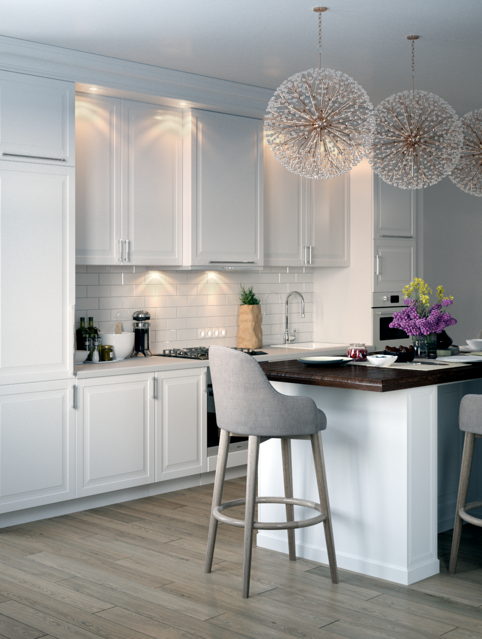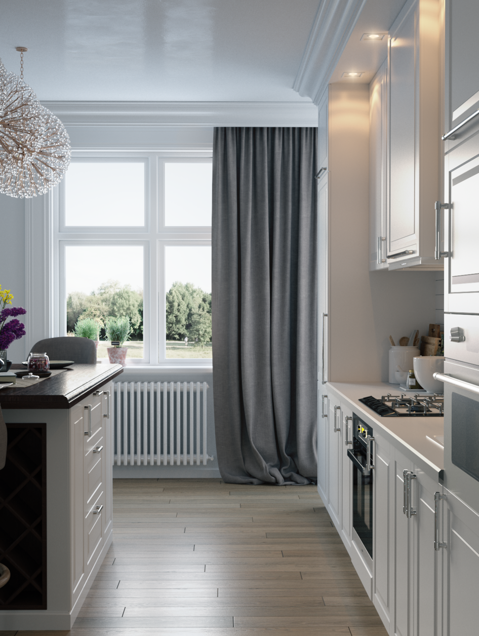 Красиво было бы поймать пару легких отражений на стеклах окна, а так кажется, что стекла в них нет. В целом, приятно смотрится. Волнует меня то, что люстра эта масштабируется, а значит кто-то закосячил и не сможет найти такую в реальности. У вас она маленькая, а тут недавно выкладывали комод, она там в 1 метр диаметром.