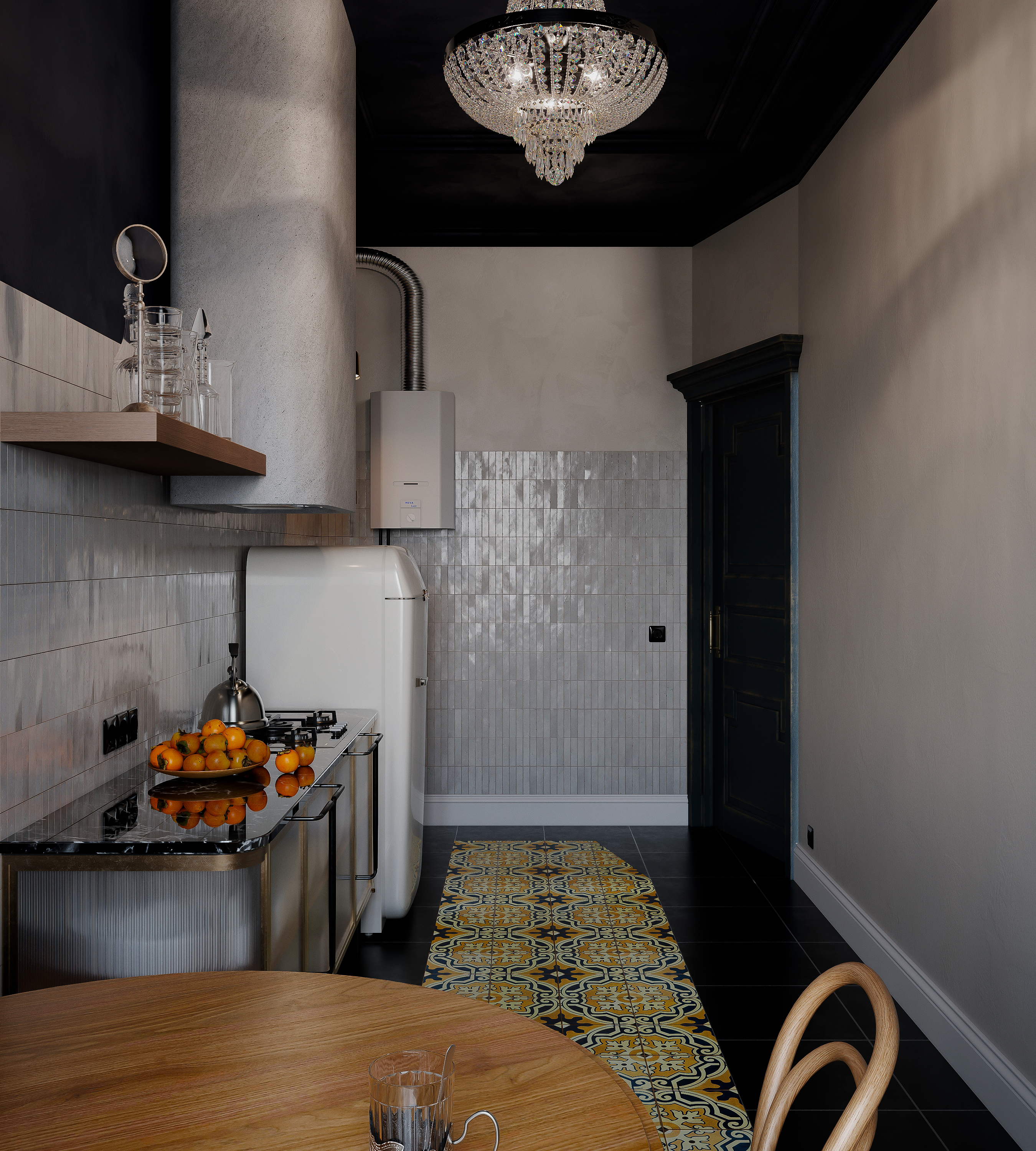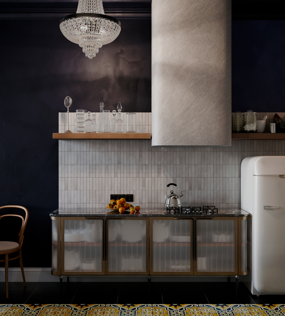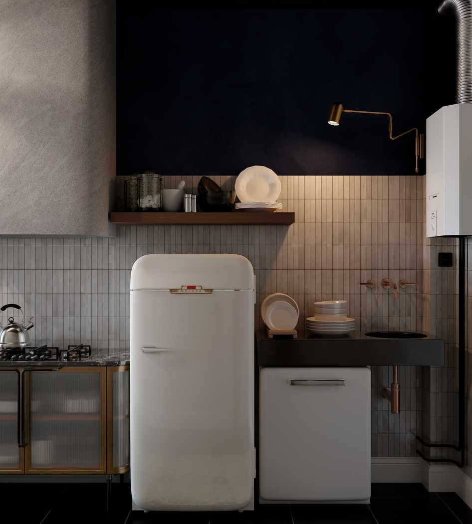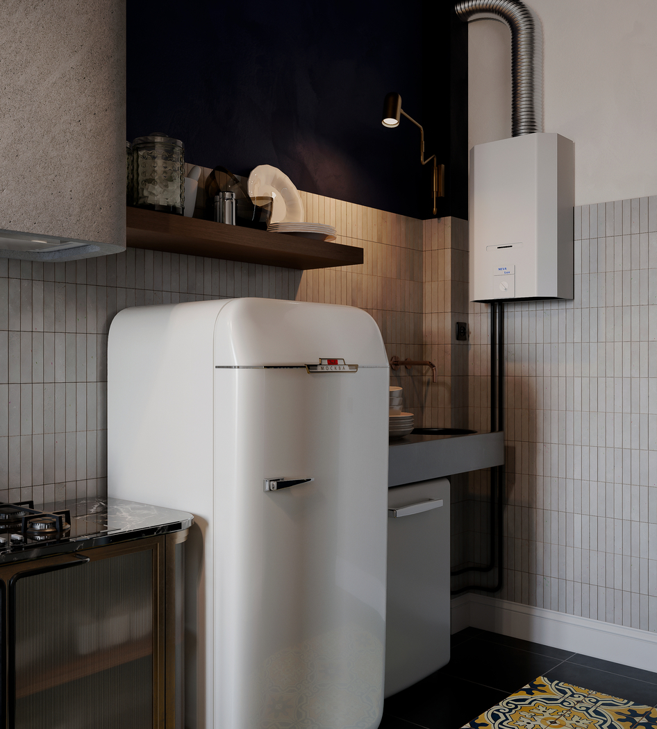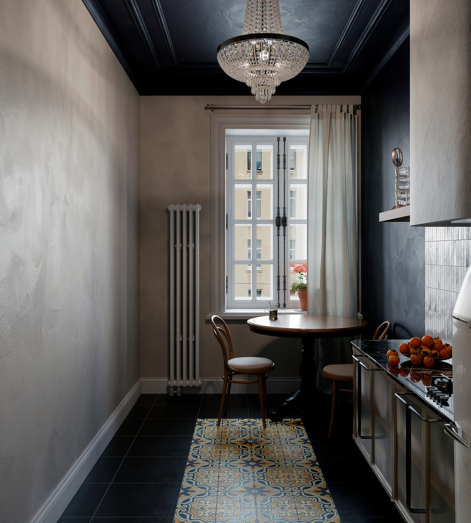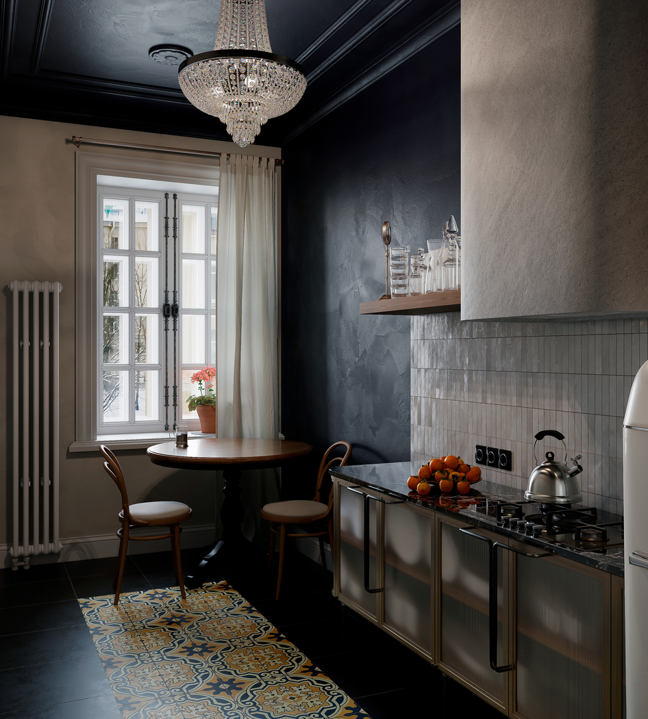 Дизайн-проект создавался для бывшей коммунальной квартиры в старом фонде центра Санкт-Петербурга. Заказчики пожелали сохранить ретро атмосферу типичного ленинградского жилья второй половины ХХ в.