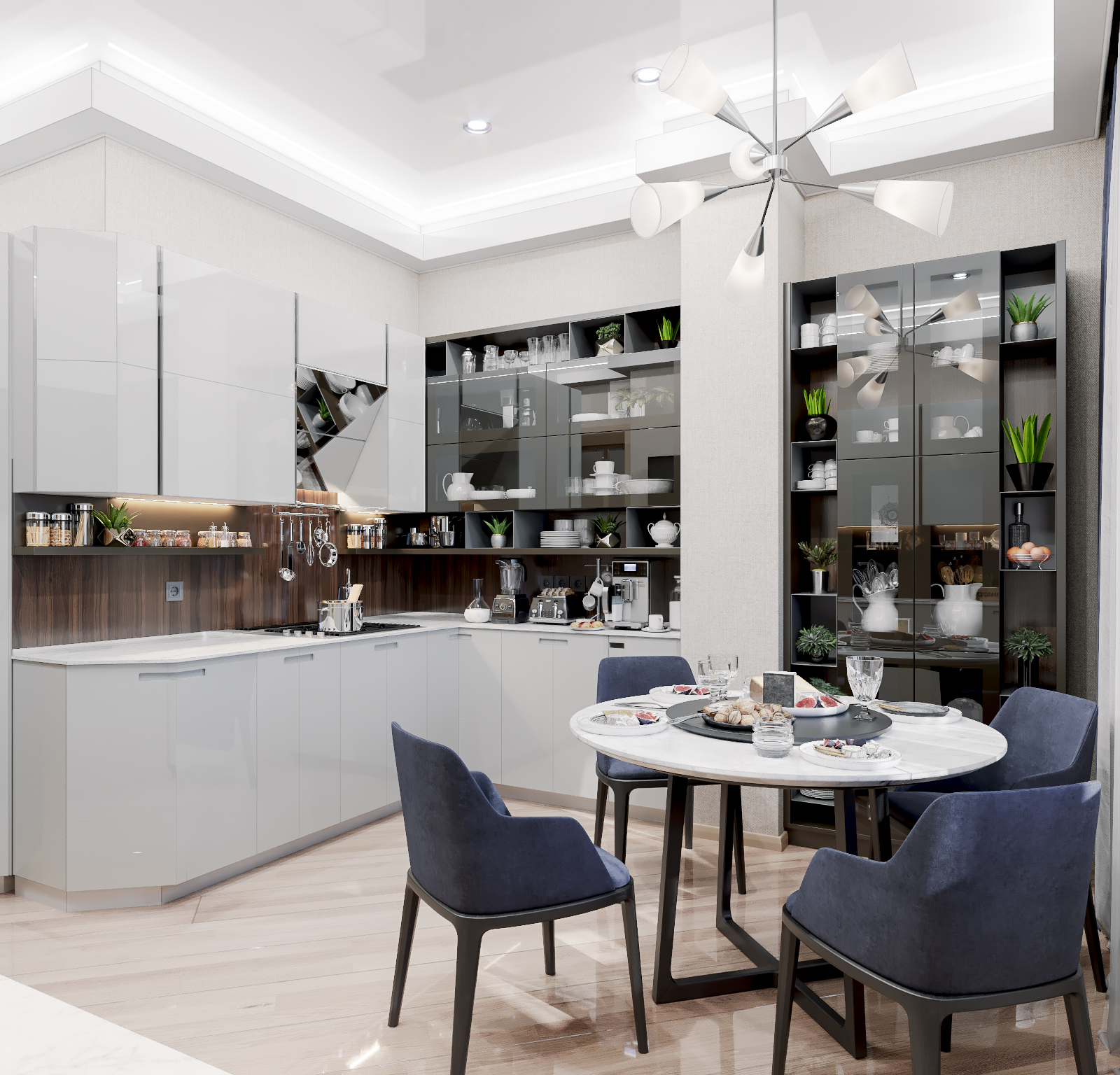достаточно красивый проект, но думаю что с светом переборщили, думаю чуть потемнее надо было сделать и отражение на полу надо размыть, а то выглядеть как стекло )