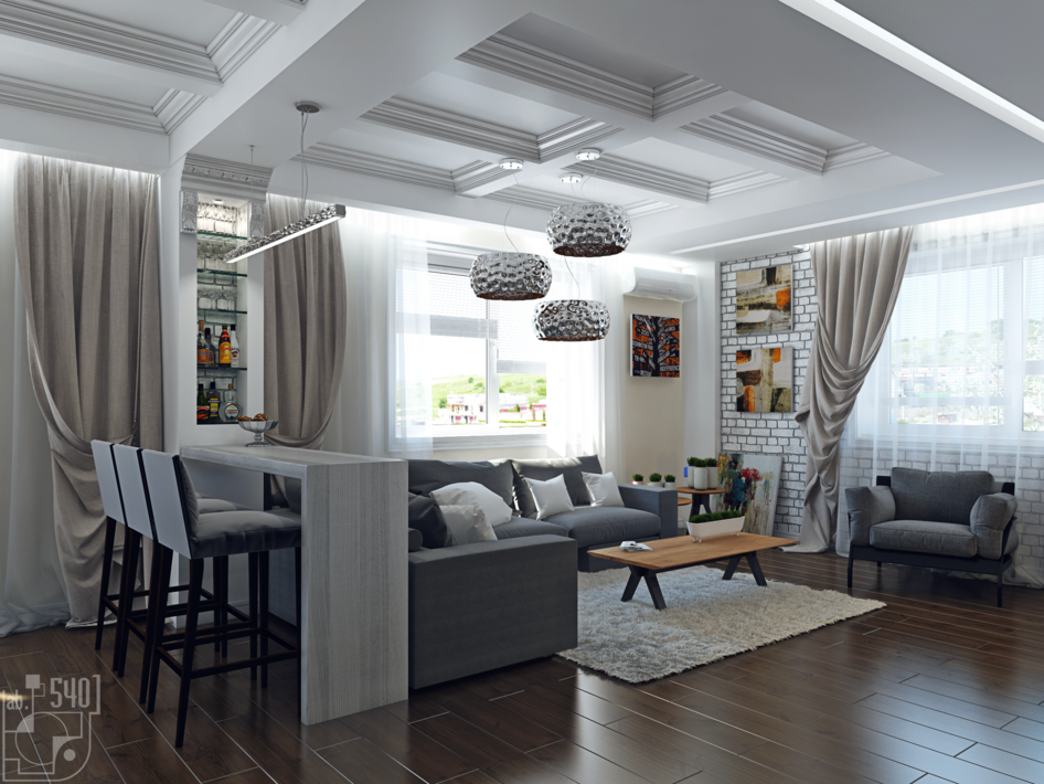 Всем привет..... Дизайн наш визуализатор Алексей решил на свой вкус сделать. Правки ему не ведомы. Кирпич везде где имеется, должен был быть белым, едва заметным-исключительно ради текстуры. Стены все молочно белые, Фасады у кухни белое дерево с выраженой текстурой. И водопад на стене как водопад. Про сроки я вообще молчу.