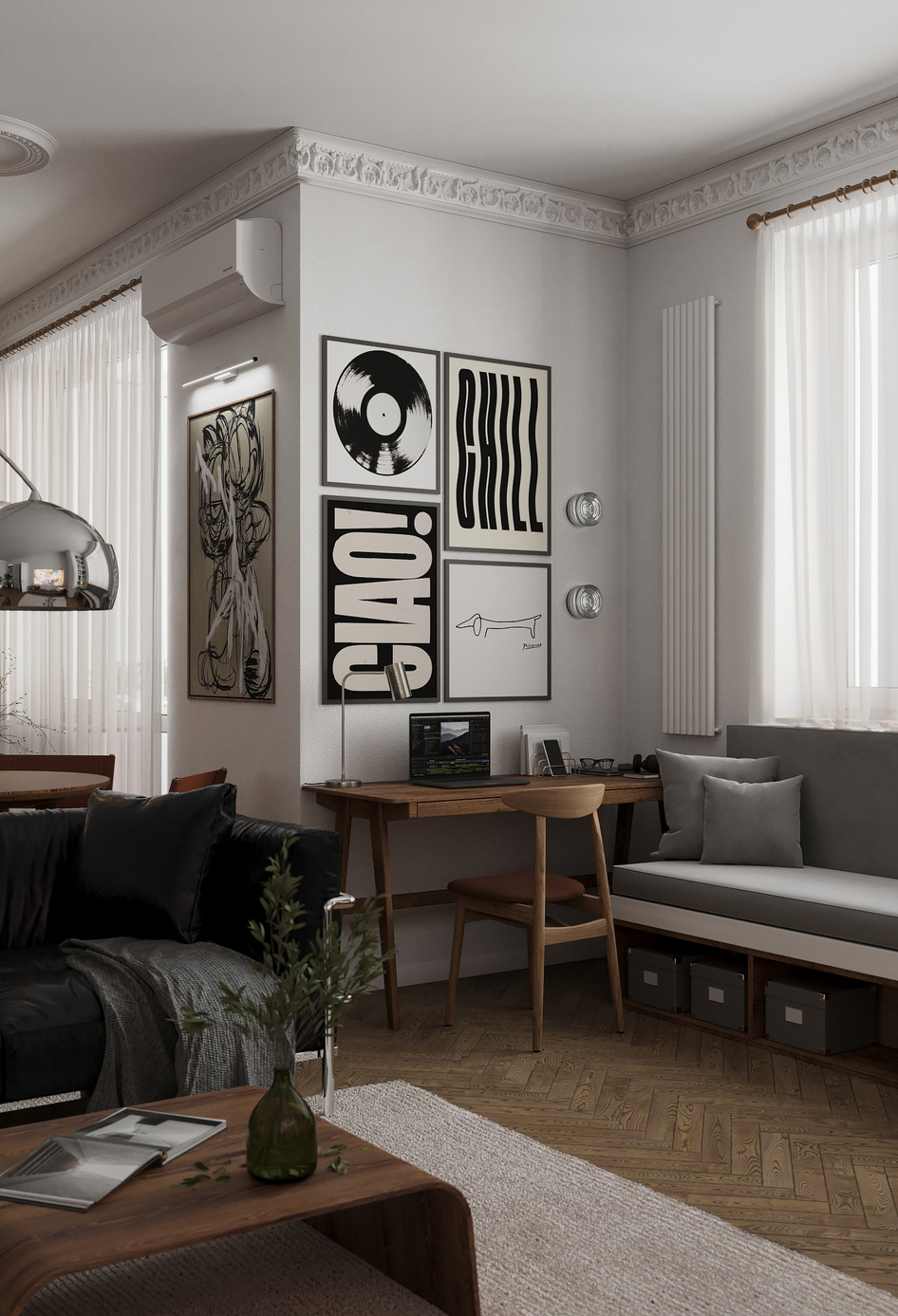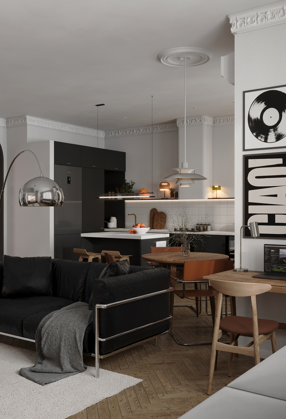 Кухня-гостиная с разными постерами