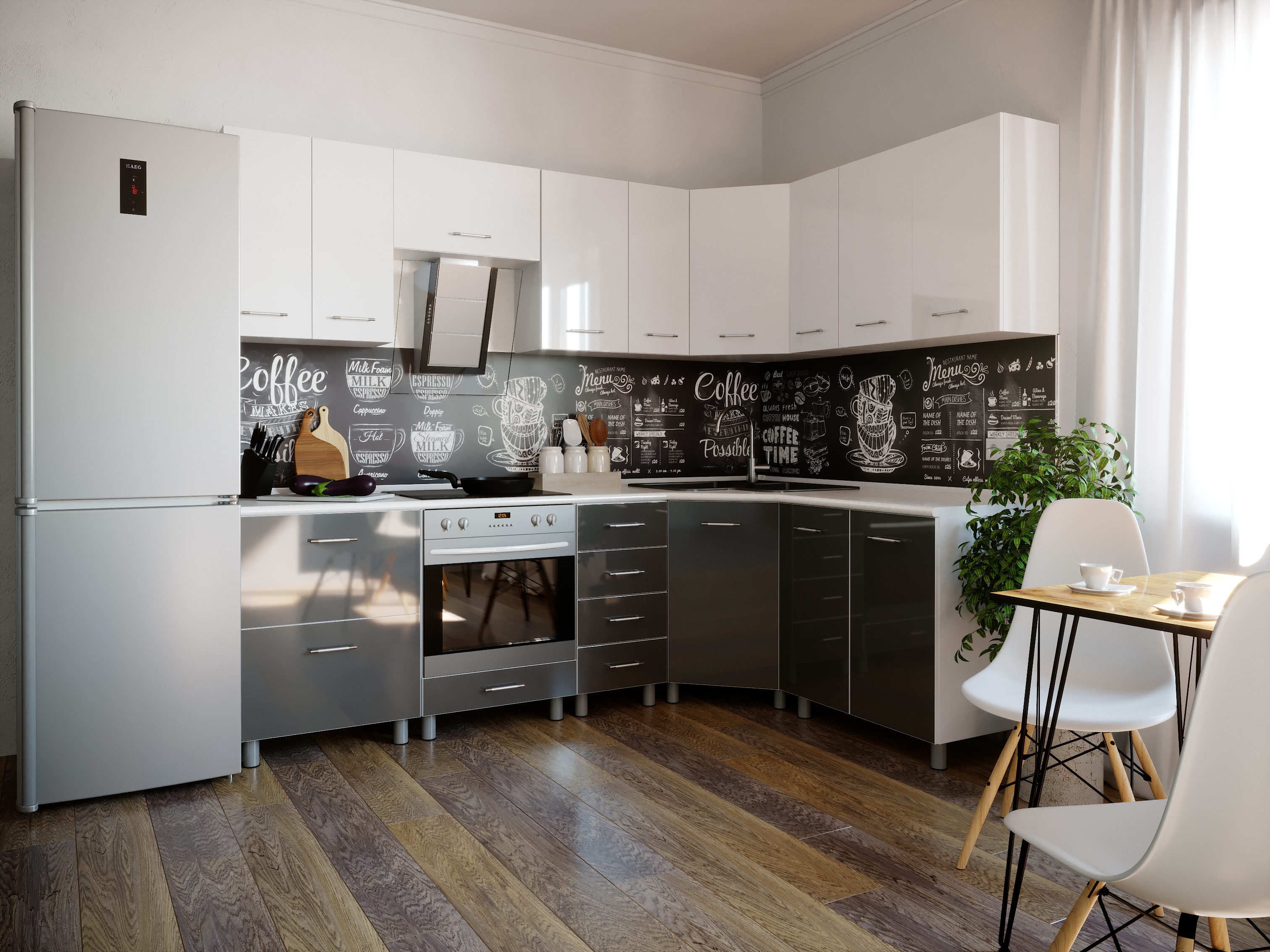Моделирование и визуализация кухонного гарнитура для мебельной фабрики. В сцене также присутствует стол также смоделированный мной. Остальное подобрано для сцены. Cinema4d, Corona render, PS.