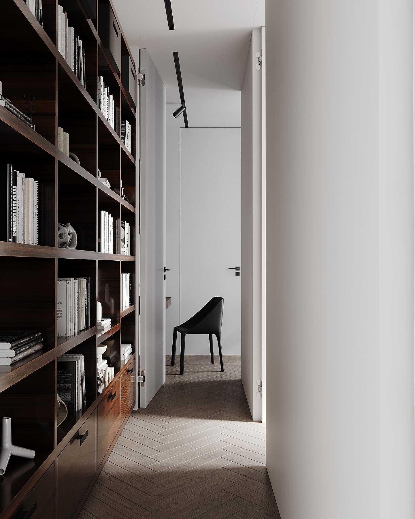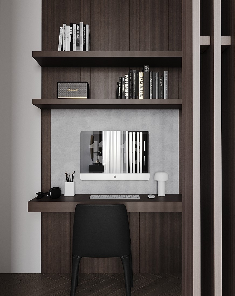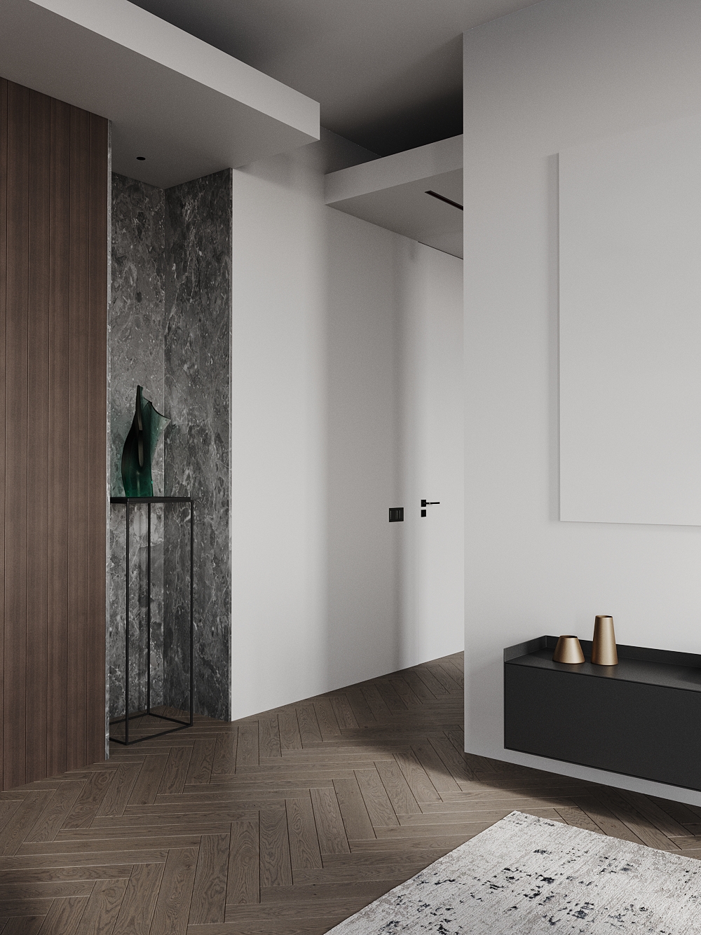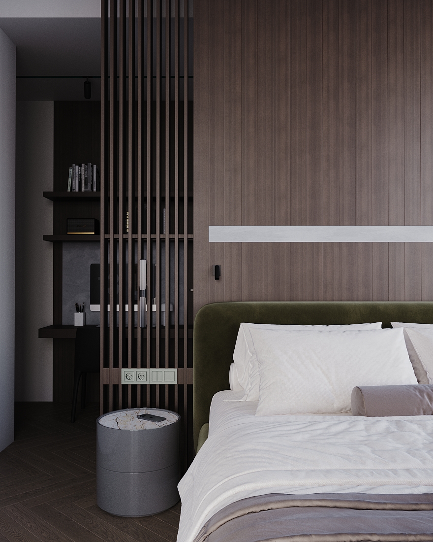 Визуализация (по референсу) квартиры 115 кв. метров для молодой семьи по реализованному проекту дизайнерской студии Артема и Лии Бабаянц (Babayants Architects)