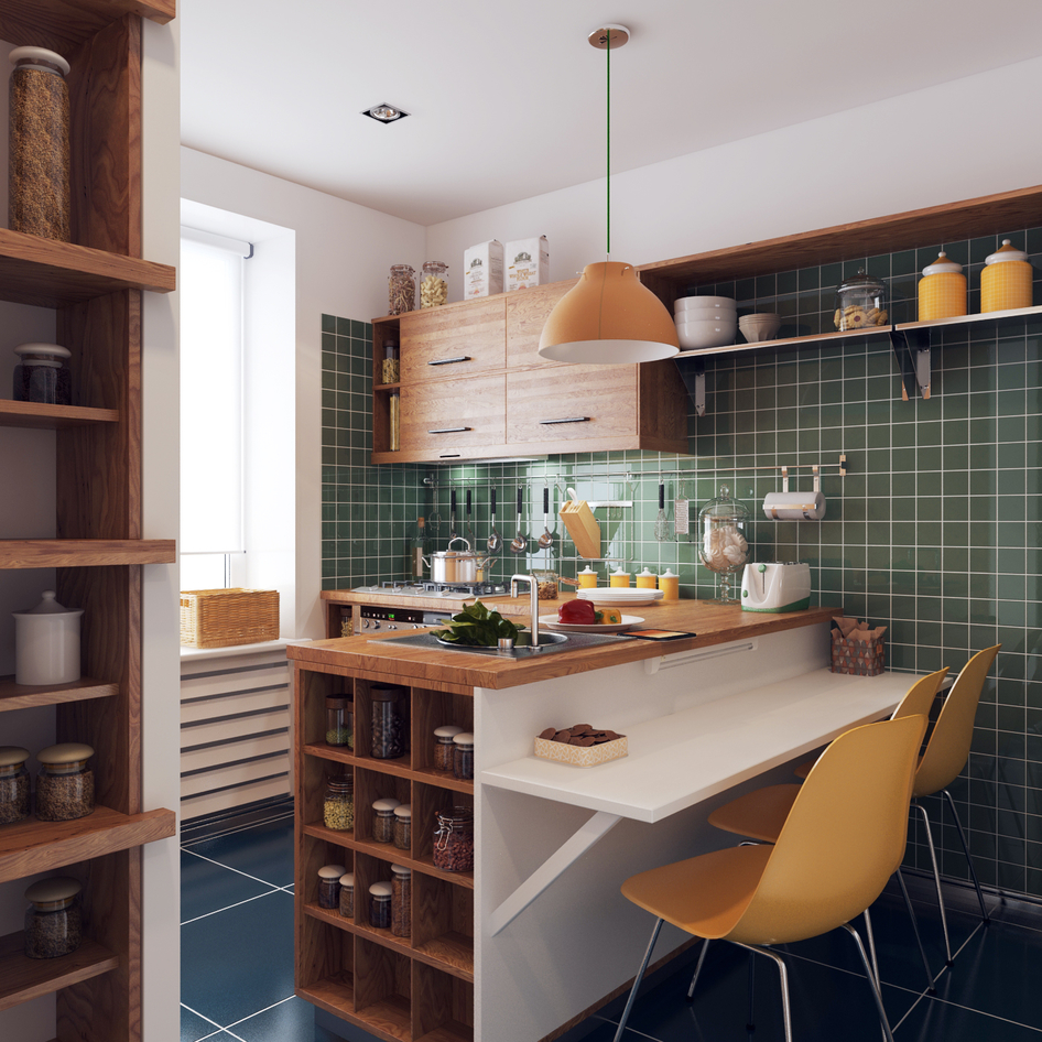 высота мойки в этом проекте 90см, высота стола 70см. по расположению не согласен с вами, если сделать на одну высоту с мойкой стол, то получится визуально что сидишь за большой плитой, в данном проекте хотелось сделать что то более интереснее и динамичнее.