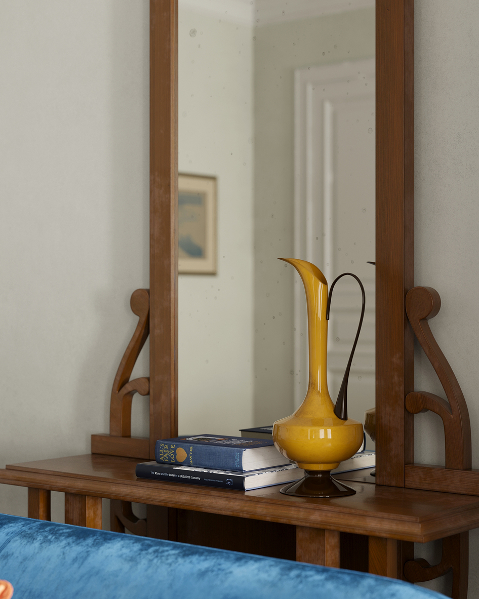 Ребята, пожалуйста, ну заморочьтесь немного с материалами. Уделите чуть больше времени. Работа с хорошим потенциалом. Нельзя просто замиксовать два цвета по маске и накинуть на объект. Зеркало и консоль затекстурены абсолютно без огонька. К сожалению, вынужден констатировать, что автор очень спешил выложить работу в галерею и допустил критичные оплошности, которые, без сомнения, снизили впечатление от ,в целом, неплохой работы.