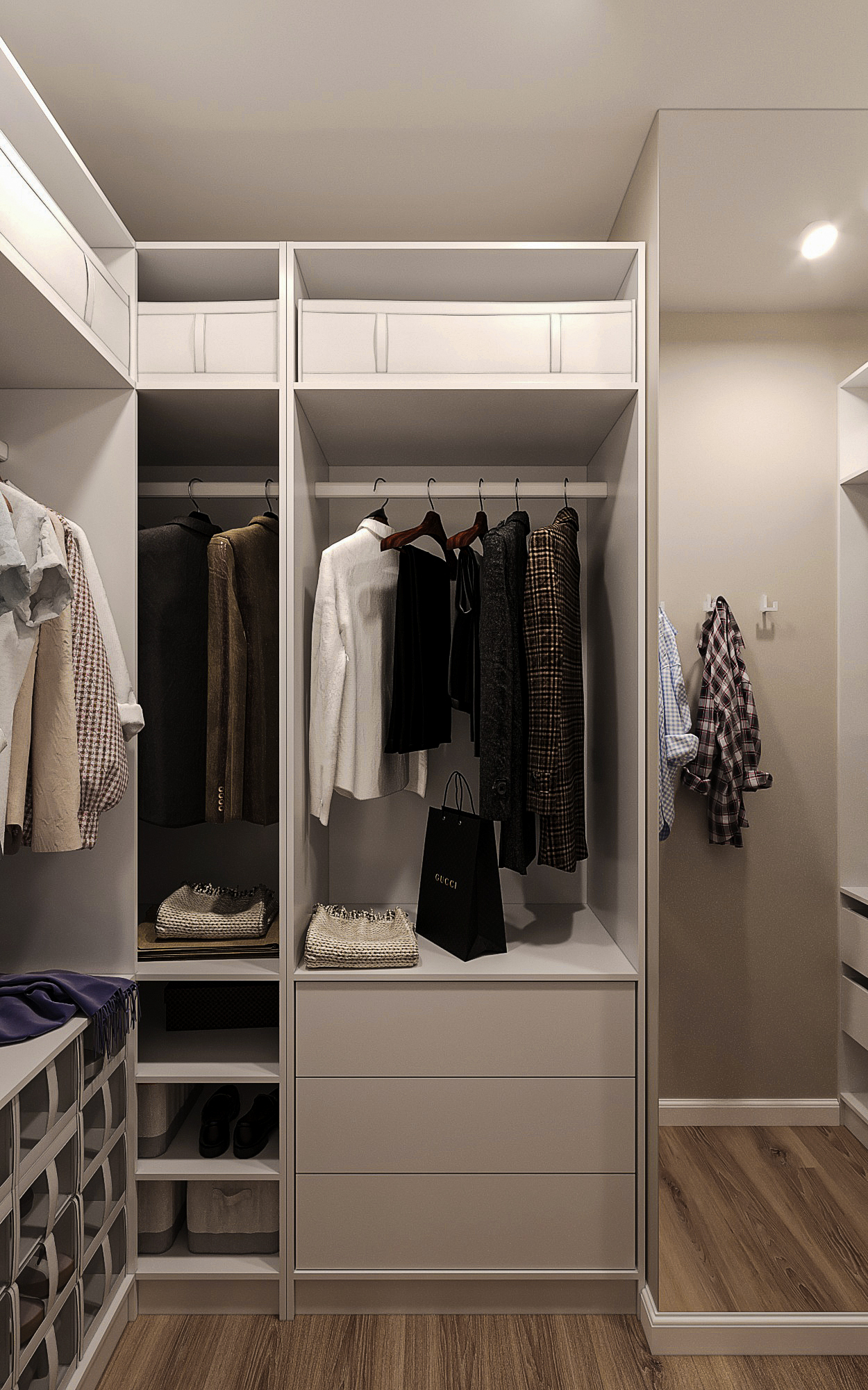 Некоторые кадры из визуализации дизайн-проекта московской квартиры для заказчика, предпочитающего кремовые тона в интерьере