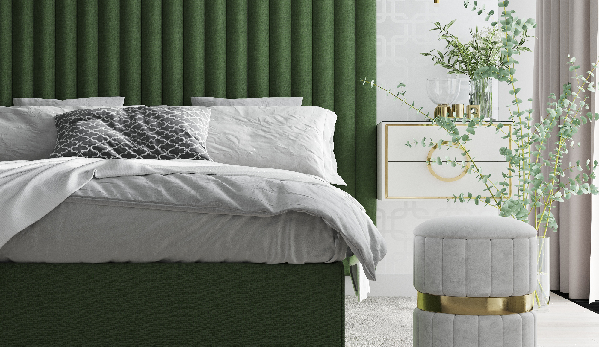 Прикроватные тумбочки, как по мне высоковаты, проснувшись тянуть руку так высоко за телефоном неудобно. И еще вопрос к туалетному столику, я как девушка уже вижу что я бы билась локтем о шкаф каждый день или терлась о стенку, ну ооочень неудобное место. Если же это полка для ключей и сумочек при входе, то может лучше тогда убрать пуф. Сидеть там точно никто не сможет) Нравится цветовая гамма в спальне)