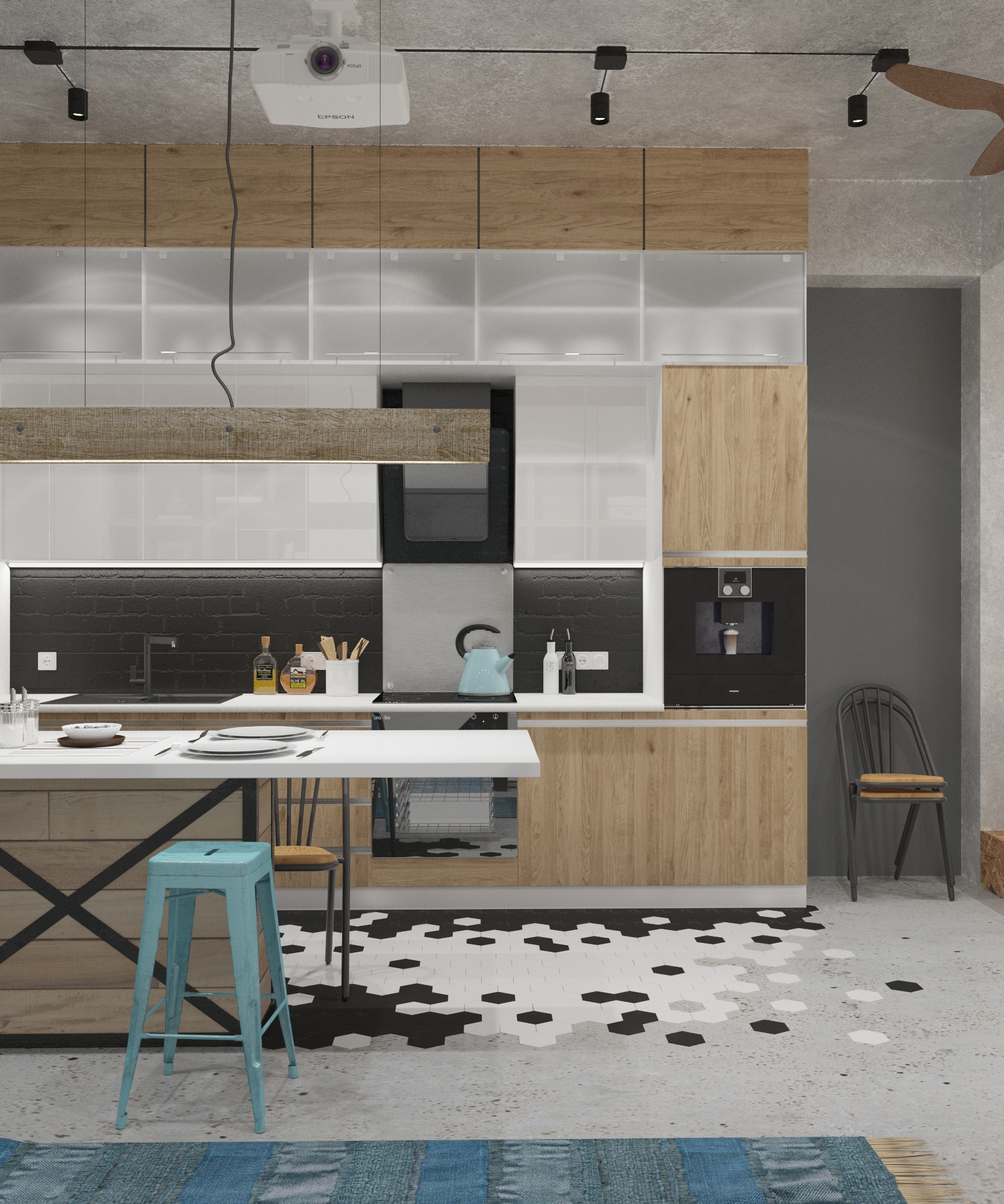 Красивый интерьер! У меня только два вопроса - что за подъёмный механизм на подиуме, и не слишком ли узкий экран для проектора?