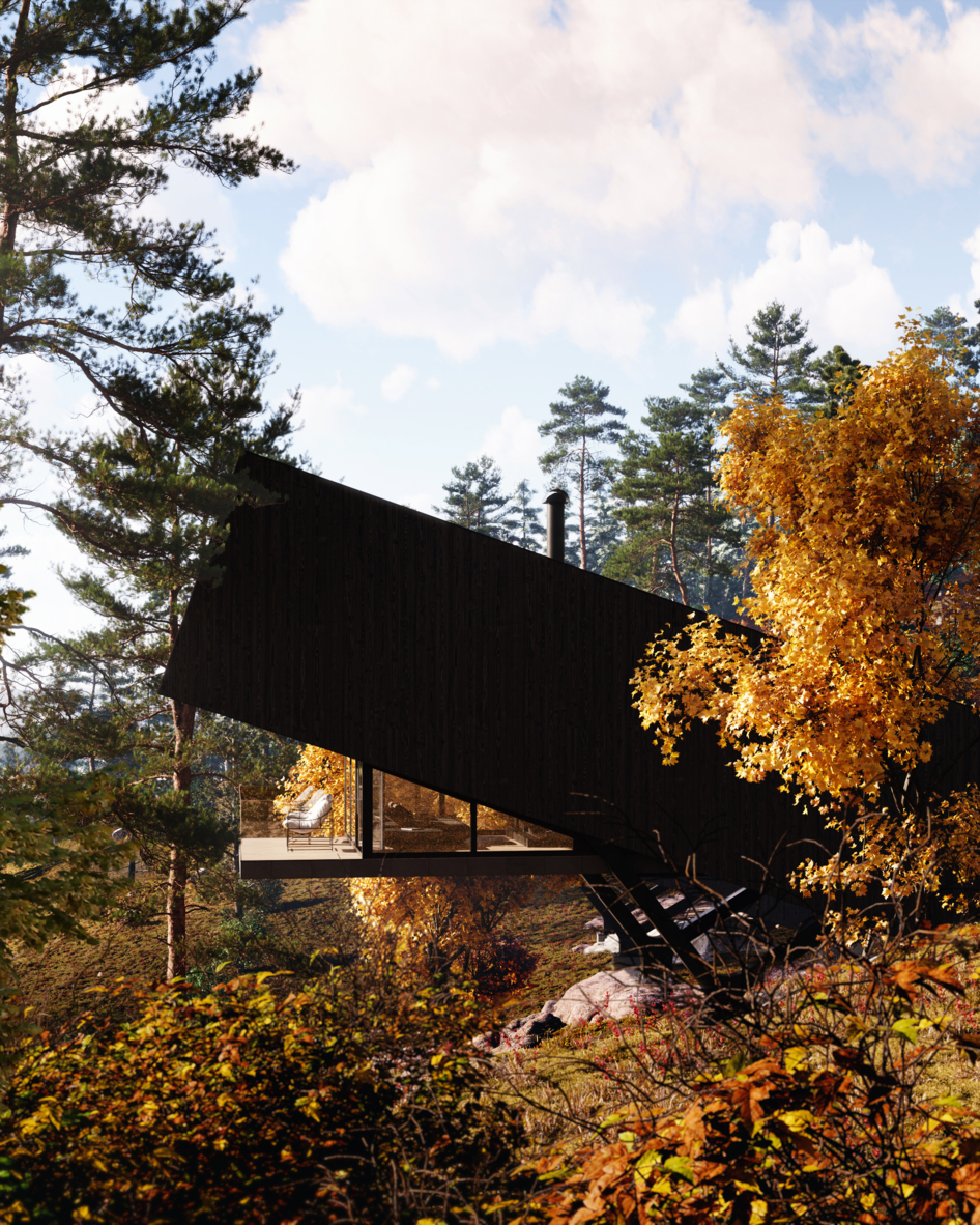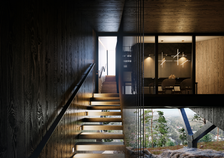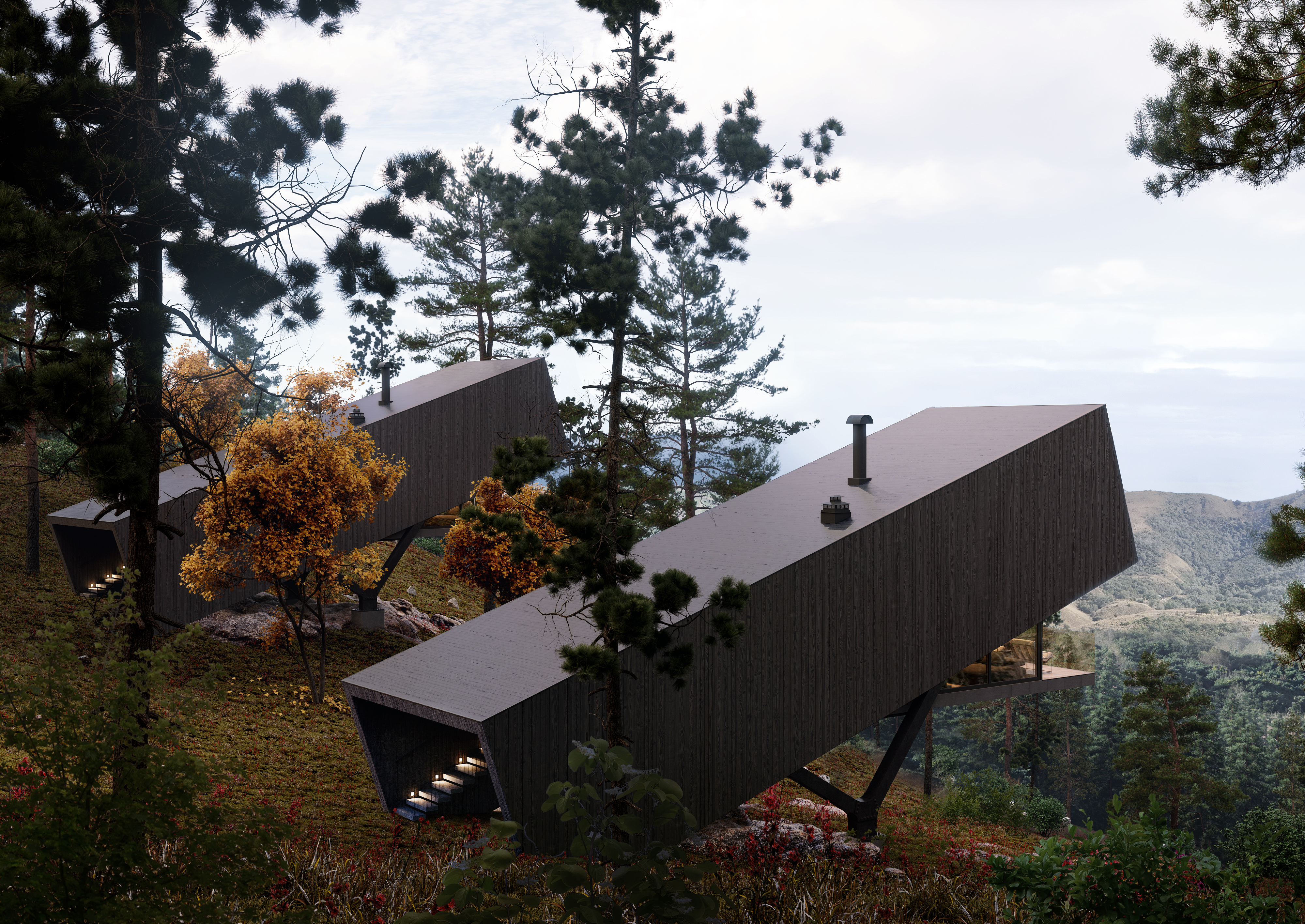 Концепт модульного домика/хижины в Талгарском районе близ в предгорьях Алматы. Архитектура оптимизирована для максимальной приватности при сохранении лучших видов местности с остекленной террасы. На втором этаже находится спальня, из которой можно любоваться ночным небом. Фасады хижины выполнены из обоженной древесины согласно традиционной японской техники Шоу Суги, благодаря которой дерево не гниет и противостоит природным осадкам. Больше ракурсов тут:
