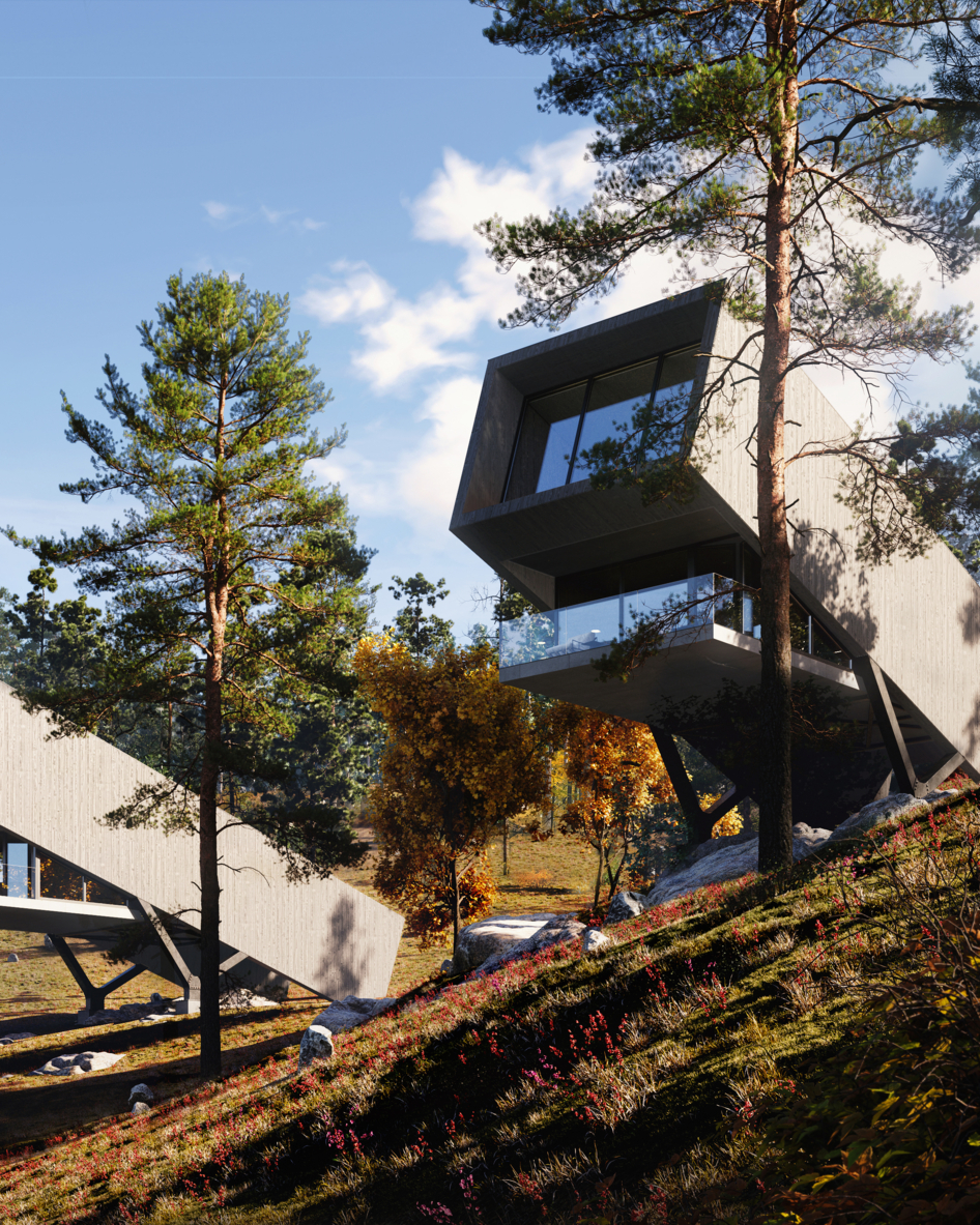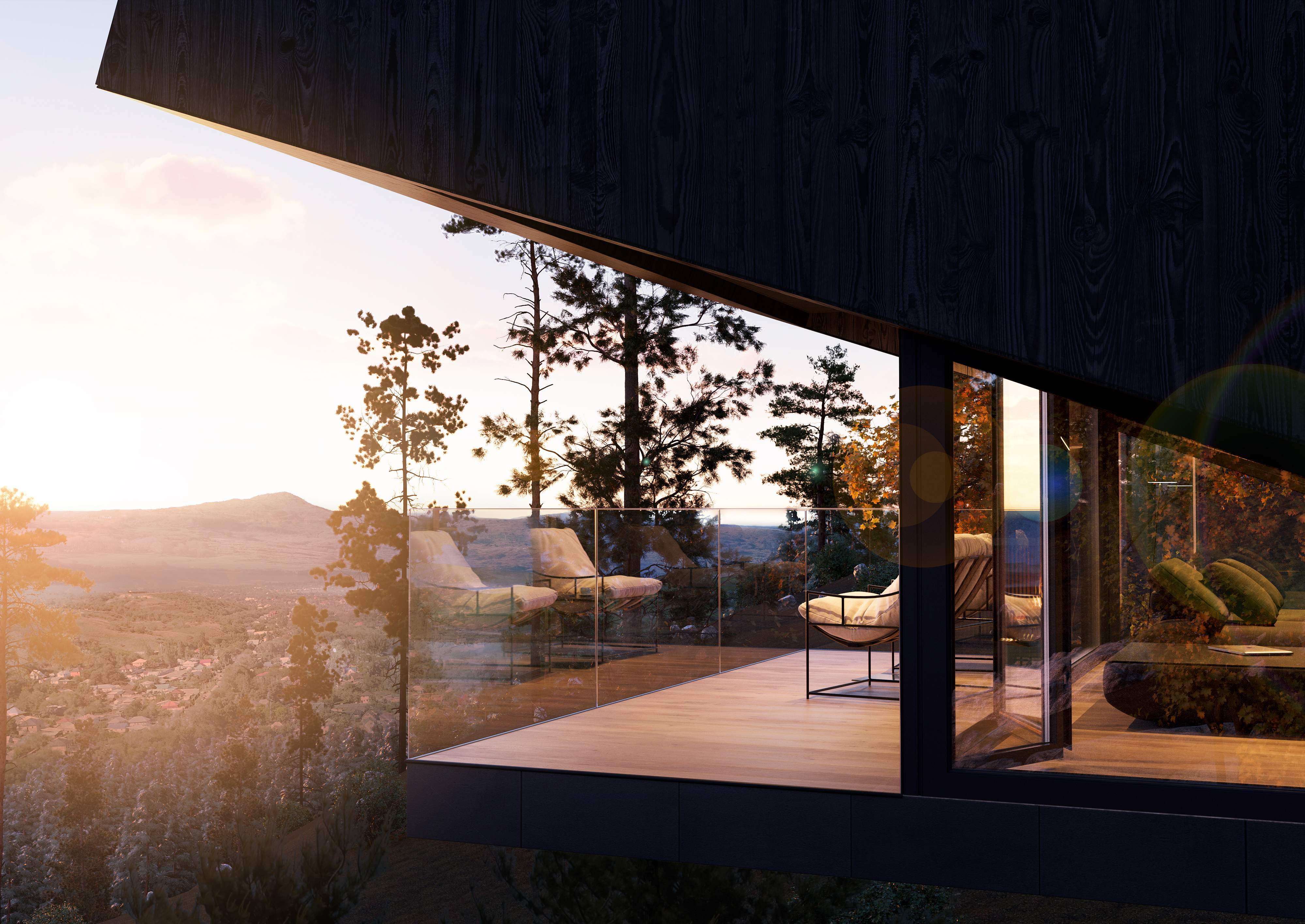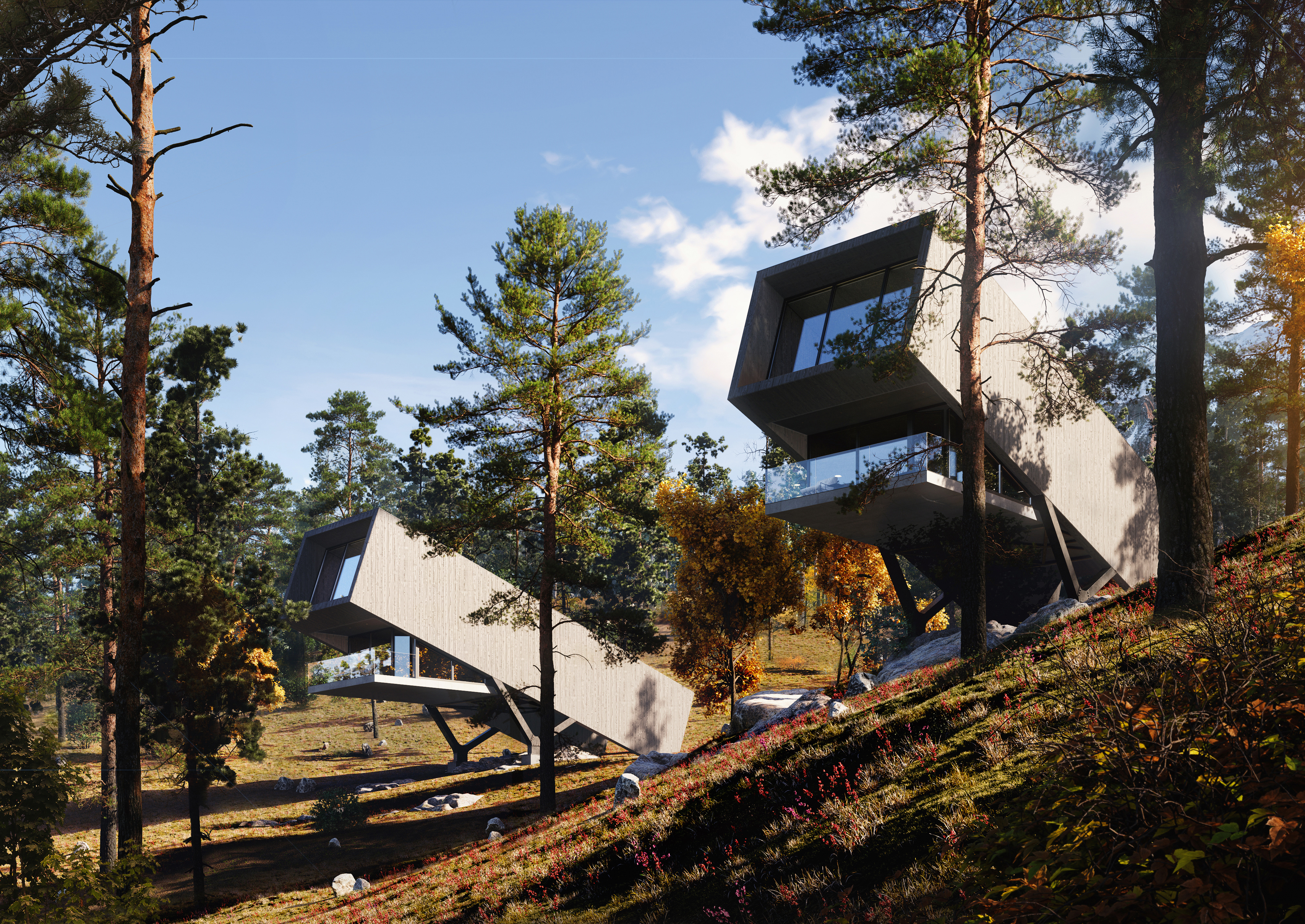 Концепт модульного домика/хижины в Талгарском районе близ в предгорьях Алматы. Архитектура оптимизирована для максимальной приватности при сохранении лучших видов местности с остекленной террасы. На втором этаже находится спальня, из которой можно любоваться ночным небом. Фасады хижины выполнены из обоженной древесины согласно традиционной японской техники Шоу Суги, благодаря которой дерево не гниет и противостоит природным осадкам. Больше ракурсов тут: