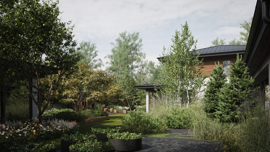 Несколько ракурсов с визуализации ландшафтного проекта.