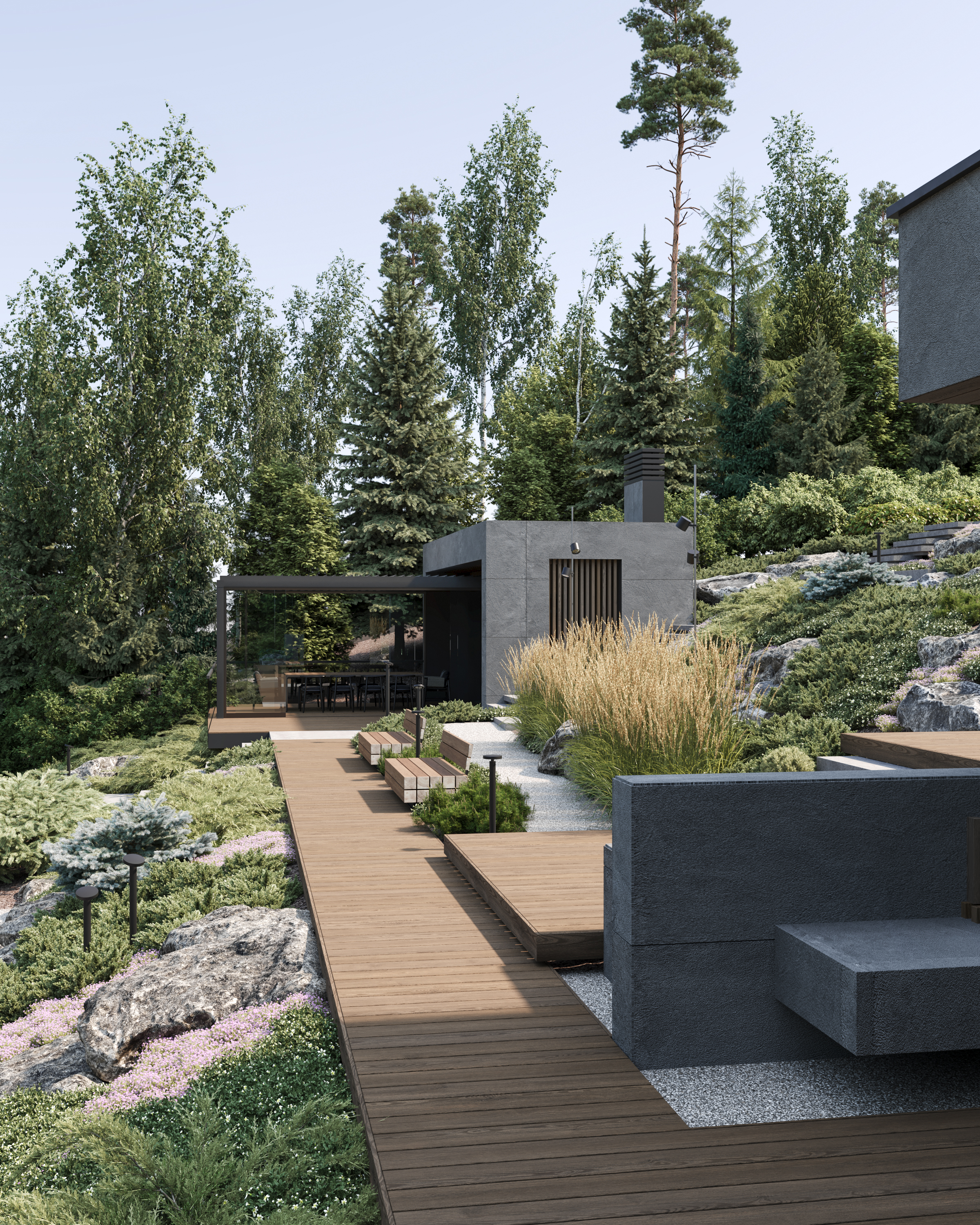 Ландшафтный дизайн | Avdeev Architect Визуализация | Назаренко Евгений Инструменты | ArchiCad, 3ds max, Corona renderer, PS.