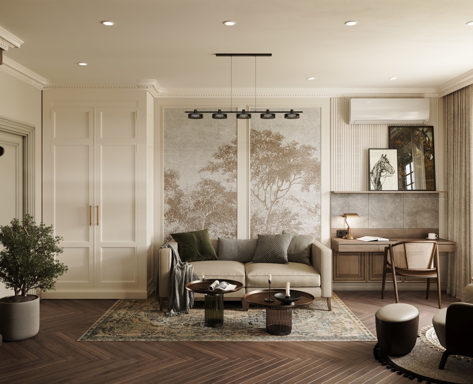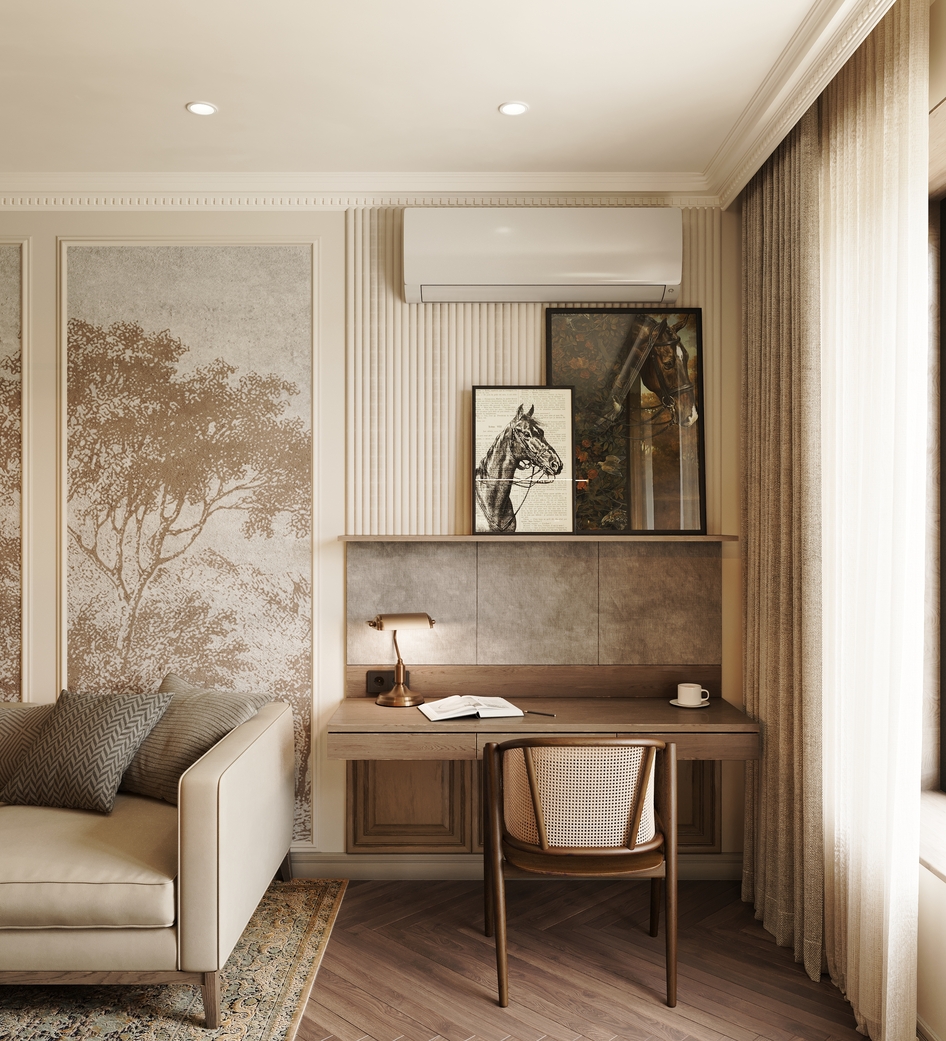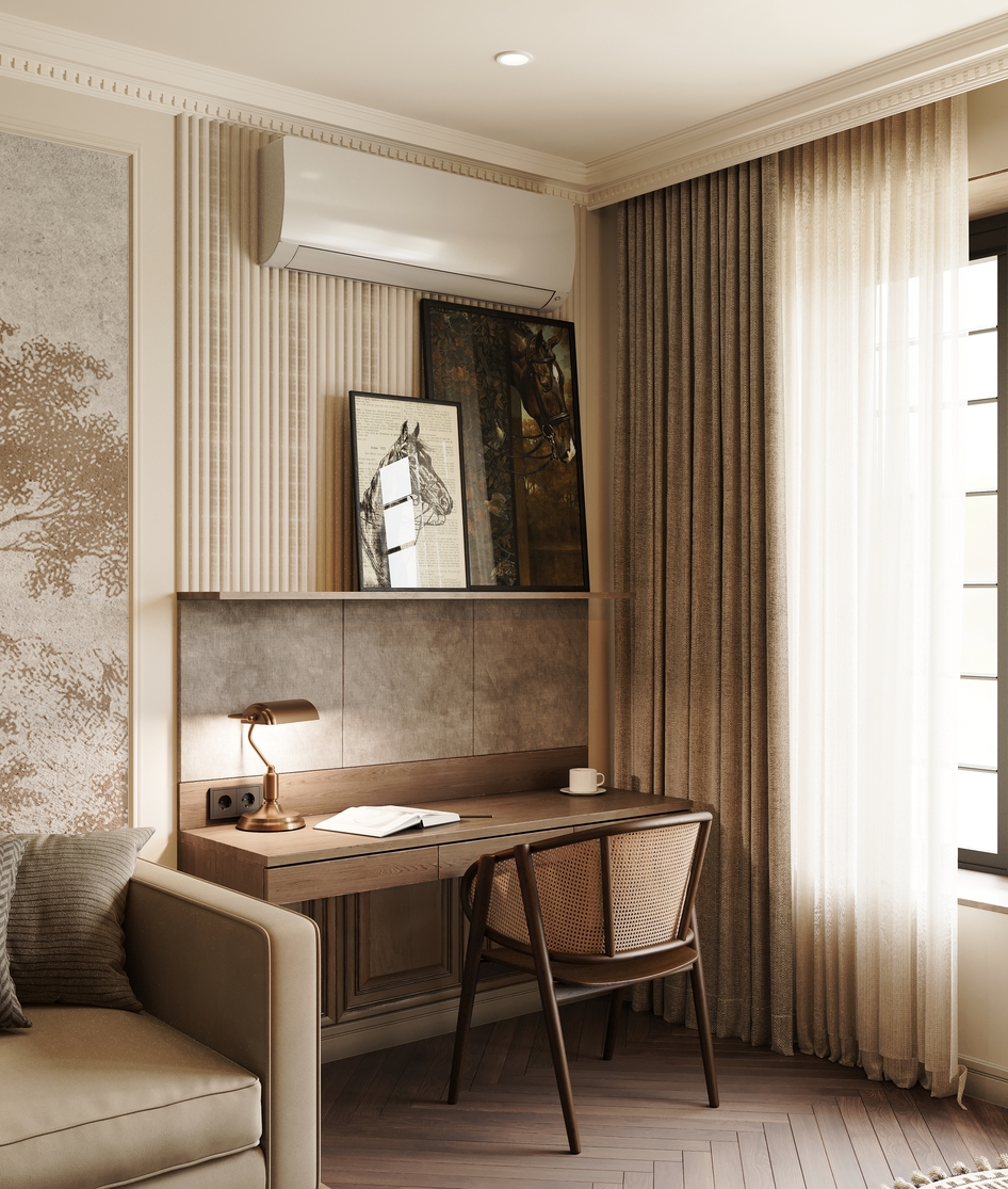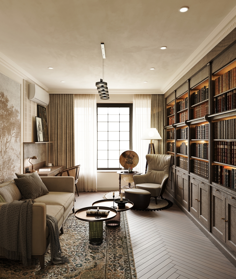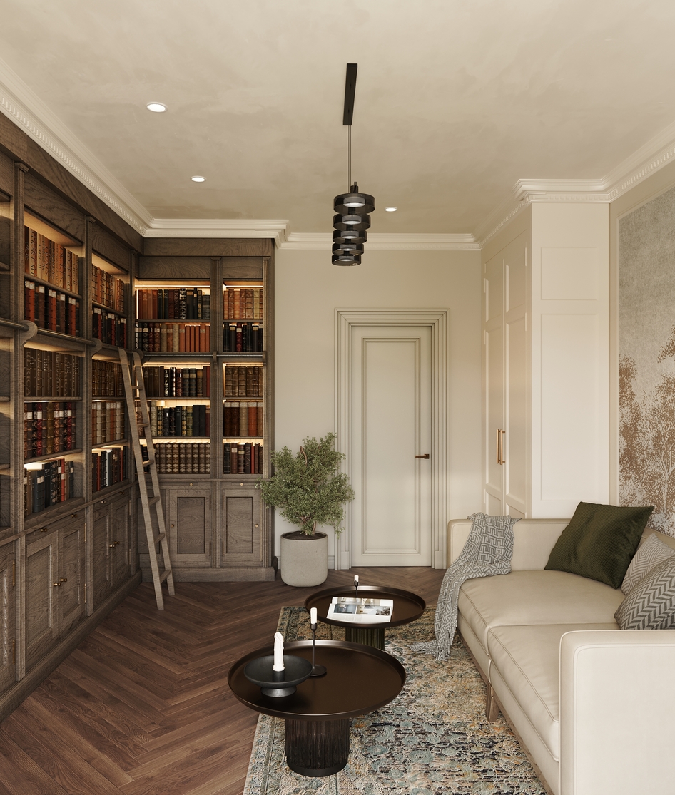 Явная проблема с материалом книжного шкафа и направлением текстуры на лестнице.