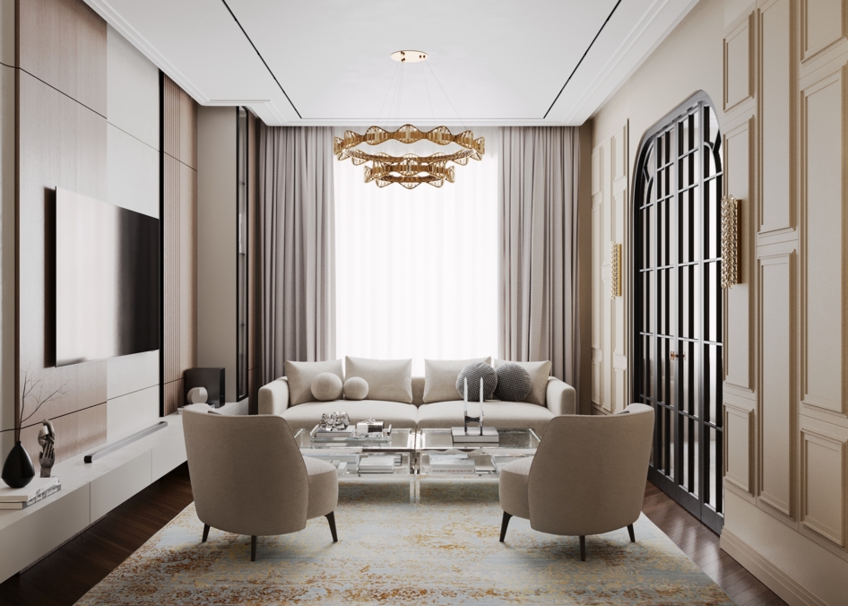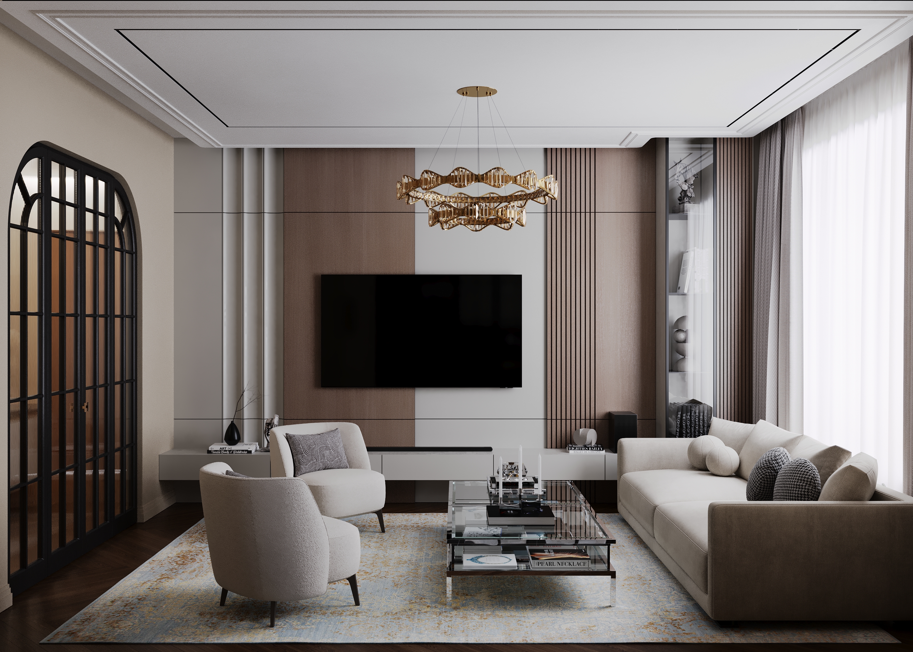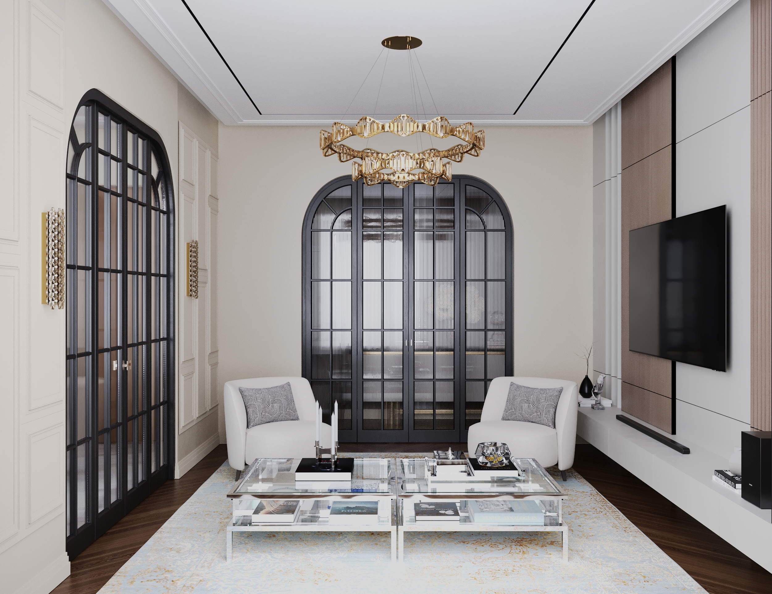 Living room with round doors