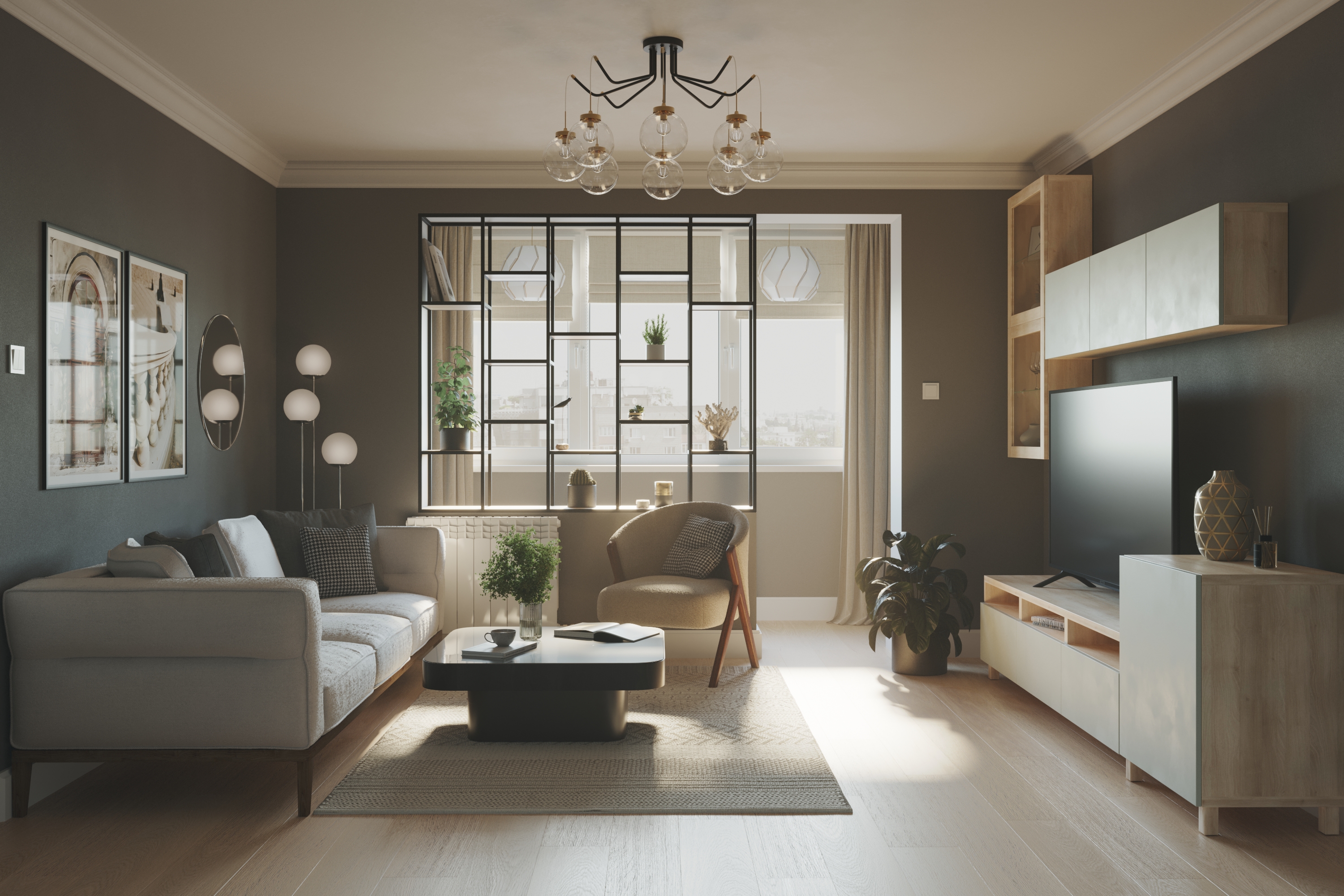 Визуализация гостиной Визуализатор - Виноградова Кристина ПО - 3Ds Max, Corona Render, Photoshop.