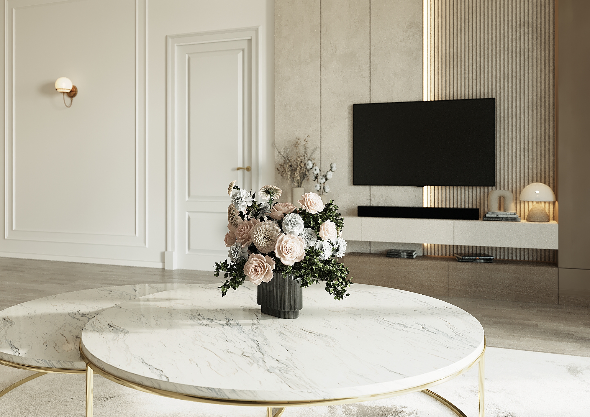 1. Абсолютно никакого освещения, кроме подвеса над обеденным столом, двух бра и подсветки у тв, потолок чистый как попка младенца)