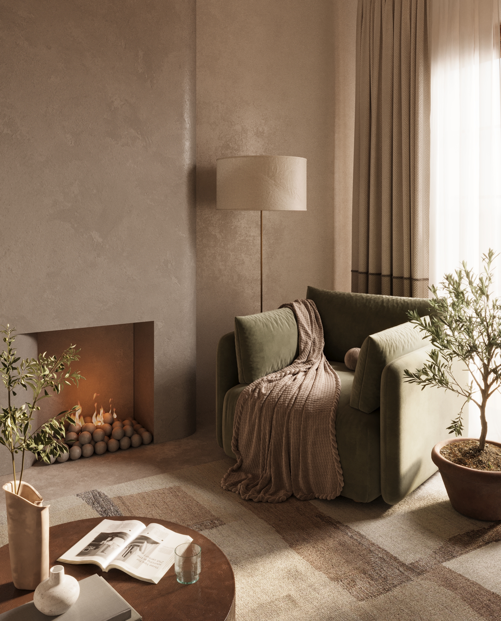 Да, у меня тоже внимание было на ковер на ковре. Лучше было бы без круглого ковра. И без круглых шаров на диване.