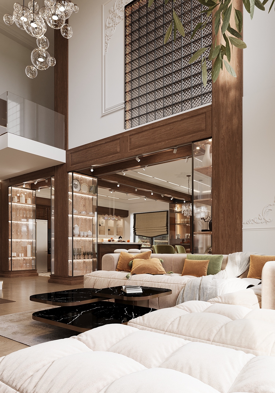 Гостиная со вторым светом часть проекта design: Горинова Дарья bauwou.design.studio darya_gorinova bauwou.ru visualisation: SILINSKAYA [3D-визуализация] Software Used: 3dsmax / Chaos Corona