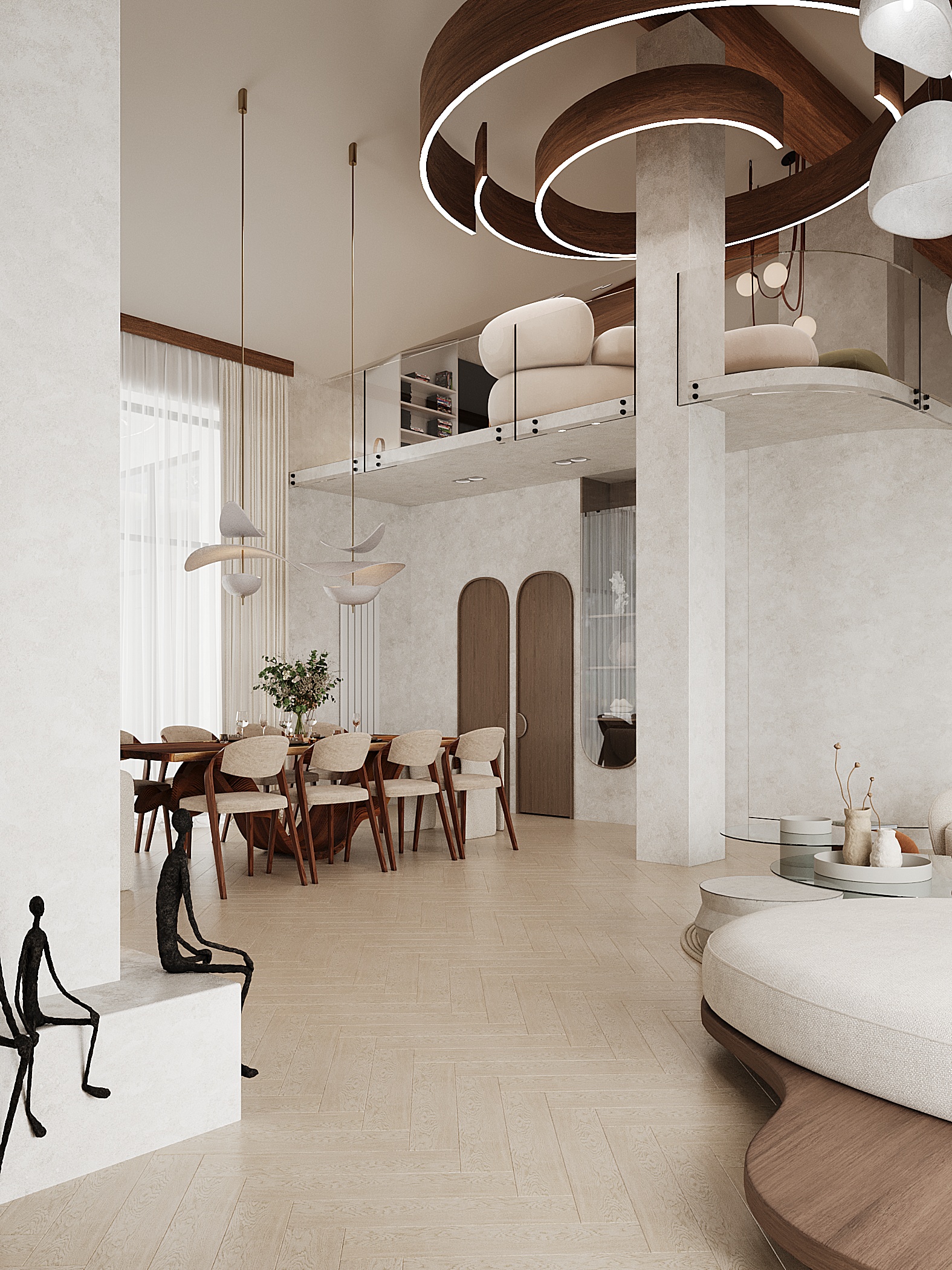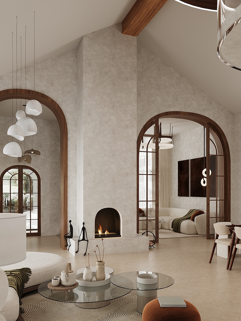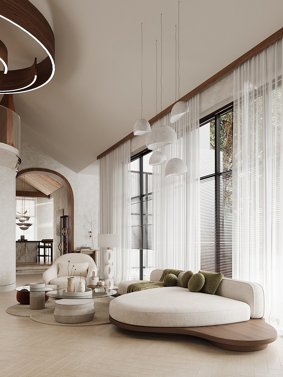 Коттедж в Образцово, гостиная часть проекта design: Горинова Дарья bauwou.design.studio darya_gorinova bauwou.ru visualisation: SILINSKAYA [3D-визуализация] Software Used: 3dsmax / Chaos Corona