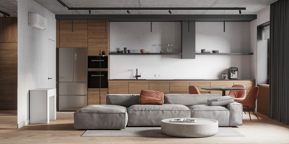 Гармонично. И жилое, теплое и современное помещение. Нравится!!