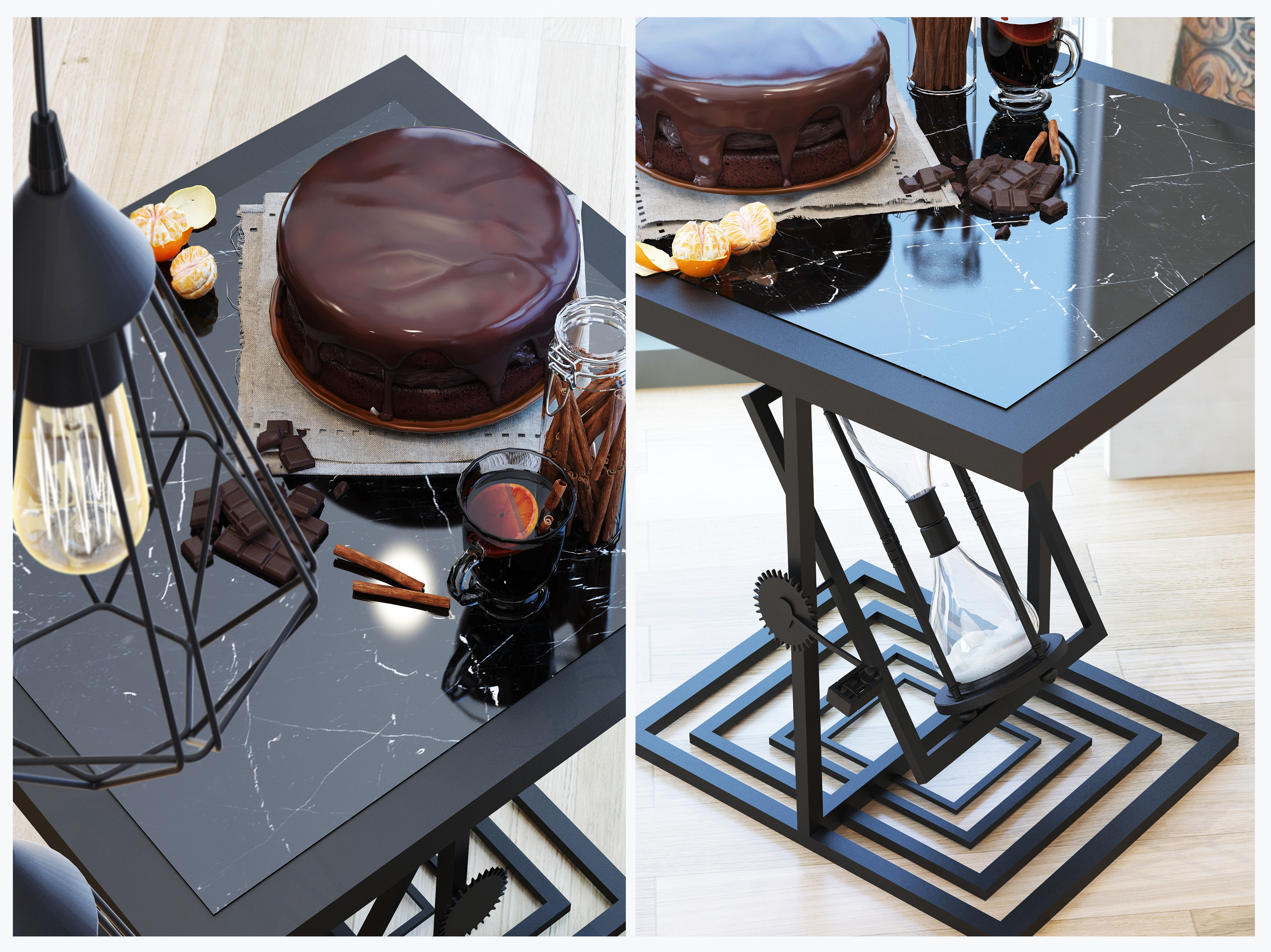 Если цель визуализации - презентация дизайна стола, то нужно доработать маты и фаски на гранях. На металле всегда есть фаски, без никак.