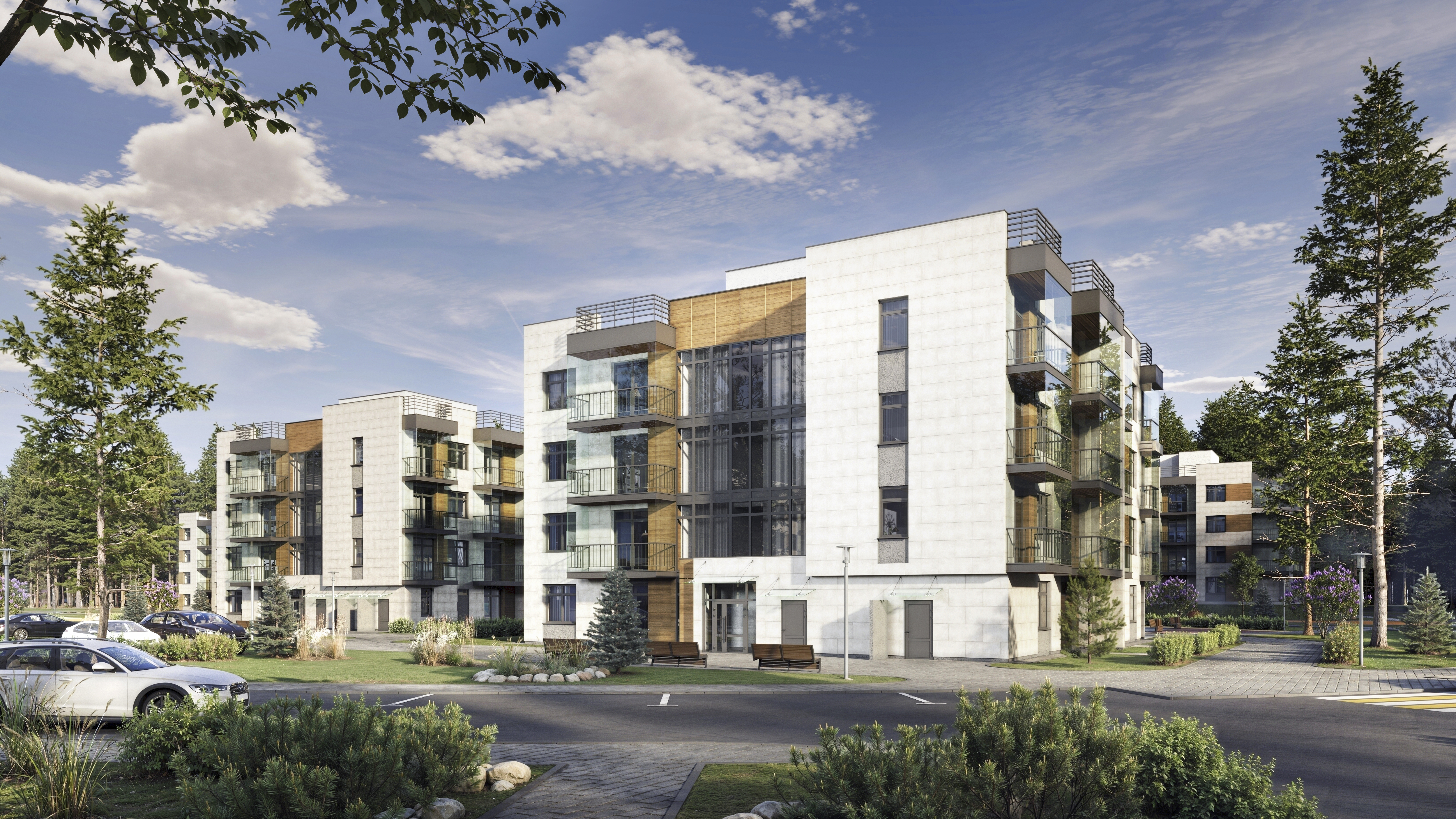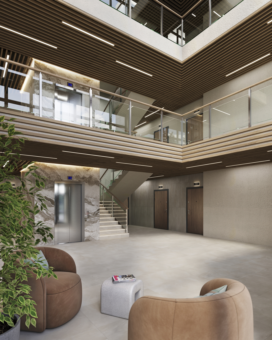 Выполнял моделирование и визуализацию квартала, а так же был придуман концепт МОПов в данном ЖК.