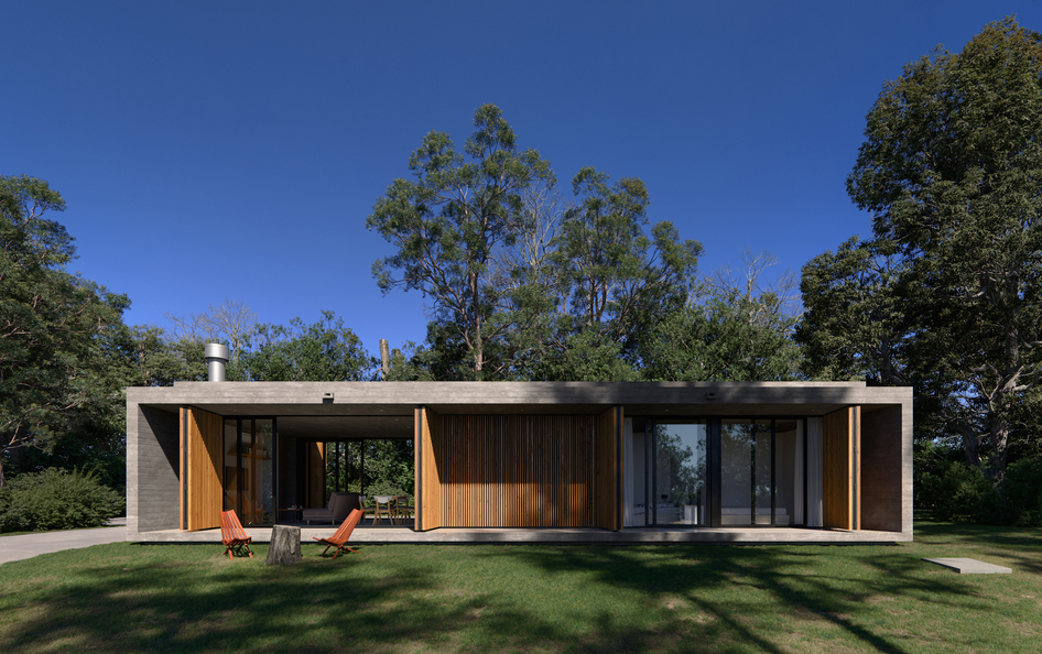 This 90 square meter house has been designed by MASA Arquitectos Company and constructed in 2016. We liked the combination of concrete, greening and endless blue sky. That's why we got a desire to recreate the atmosphere in 3D using the photos as references.