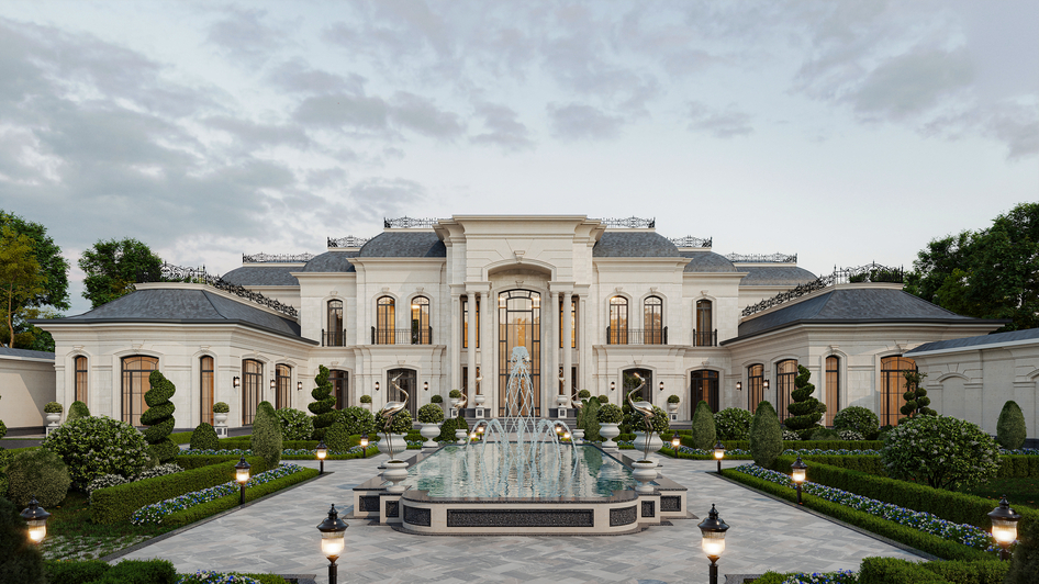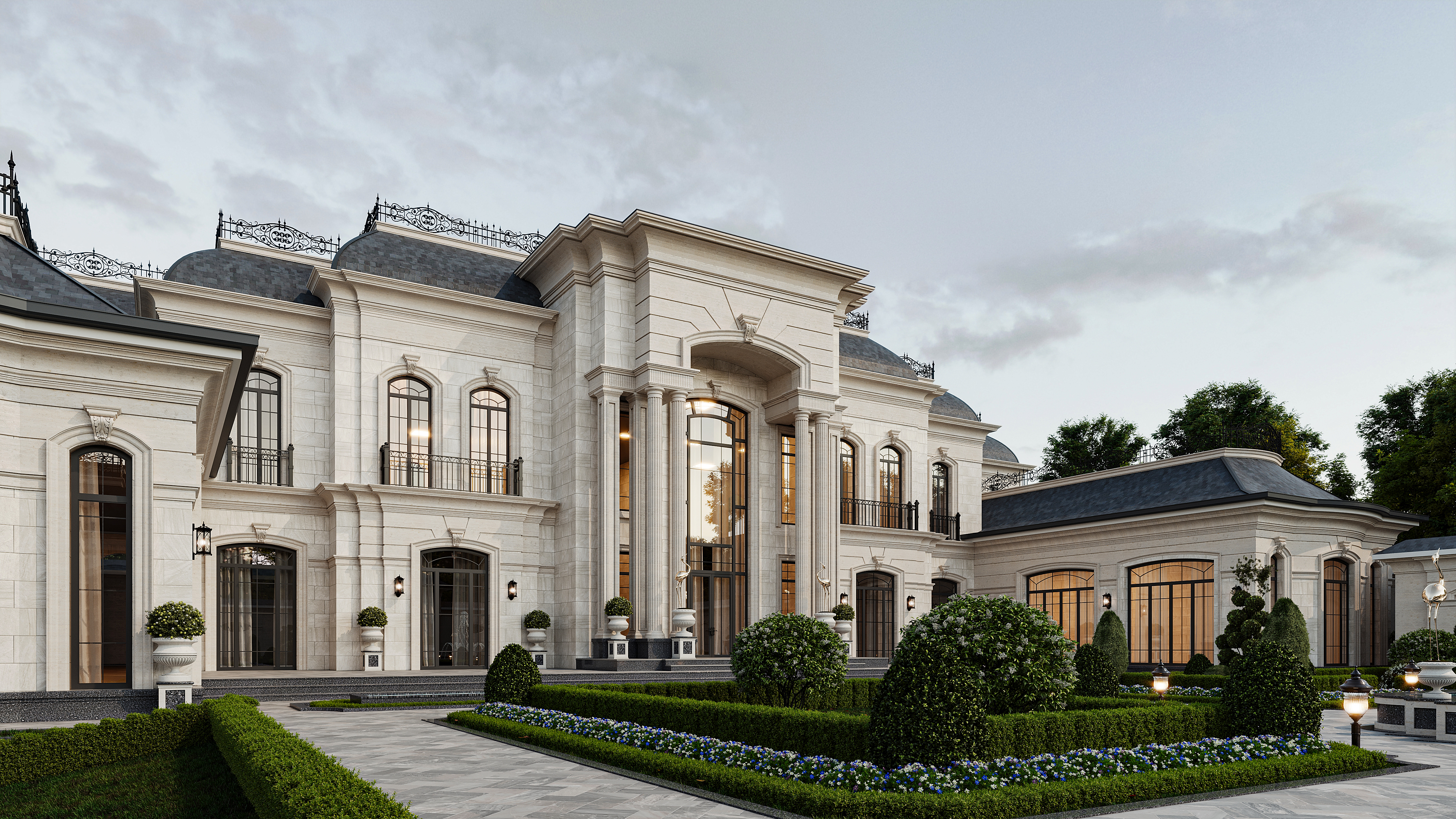 В целом, проект сочетает в себе богатое классическое наследие и современные строительные технологии, создавая образ величественной резиденции.