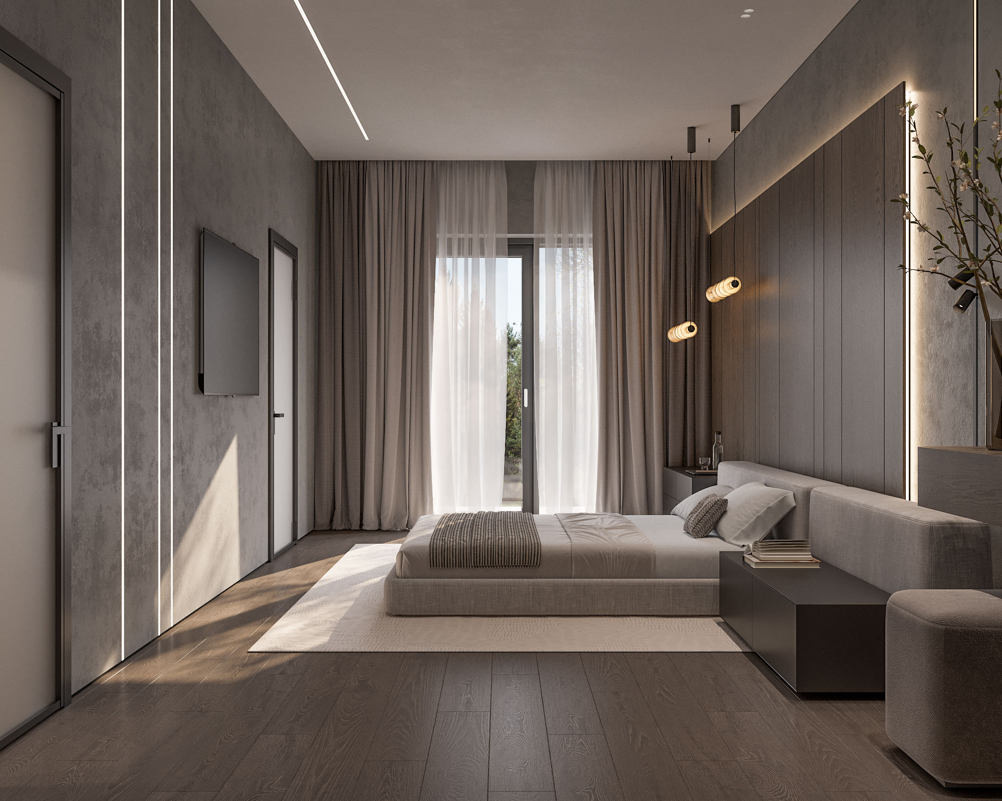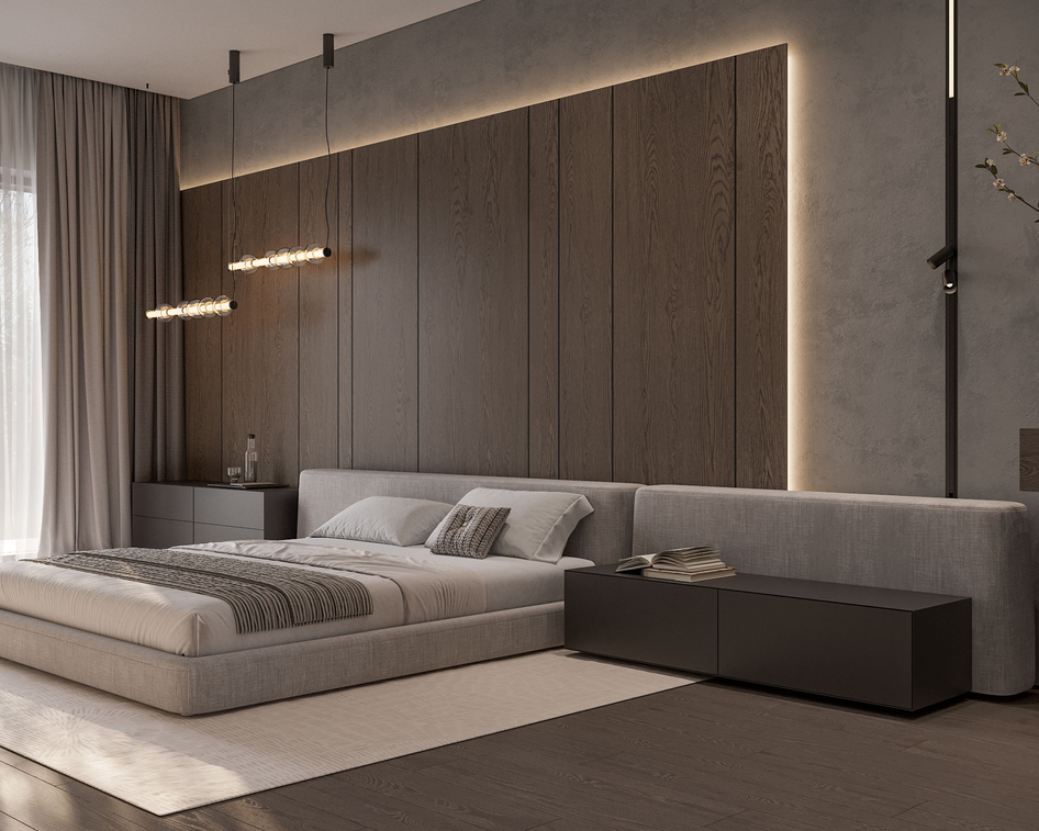 Визуализация мастер спальни в частном доме