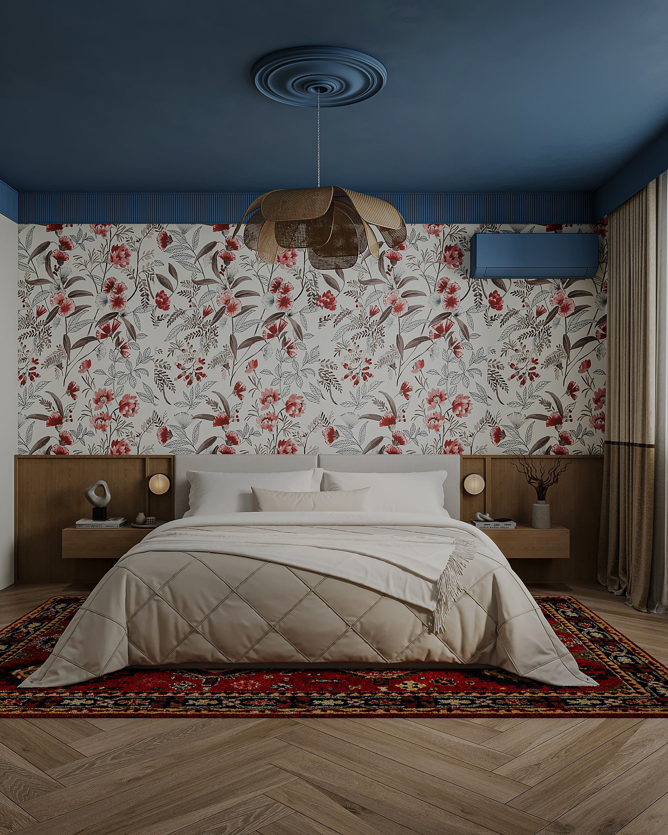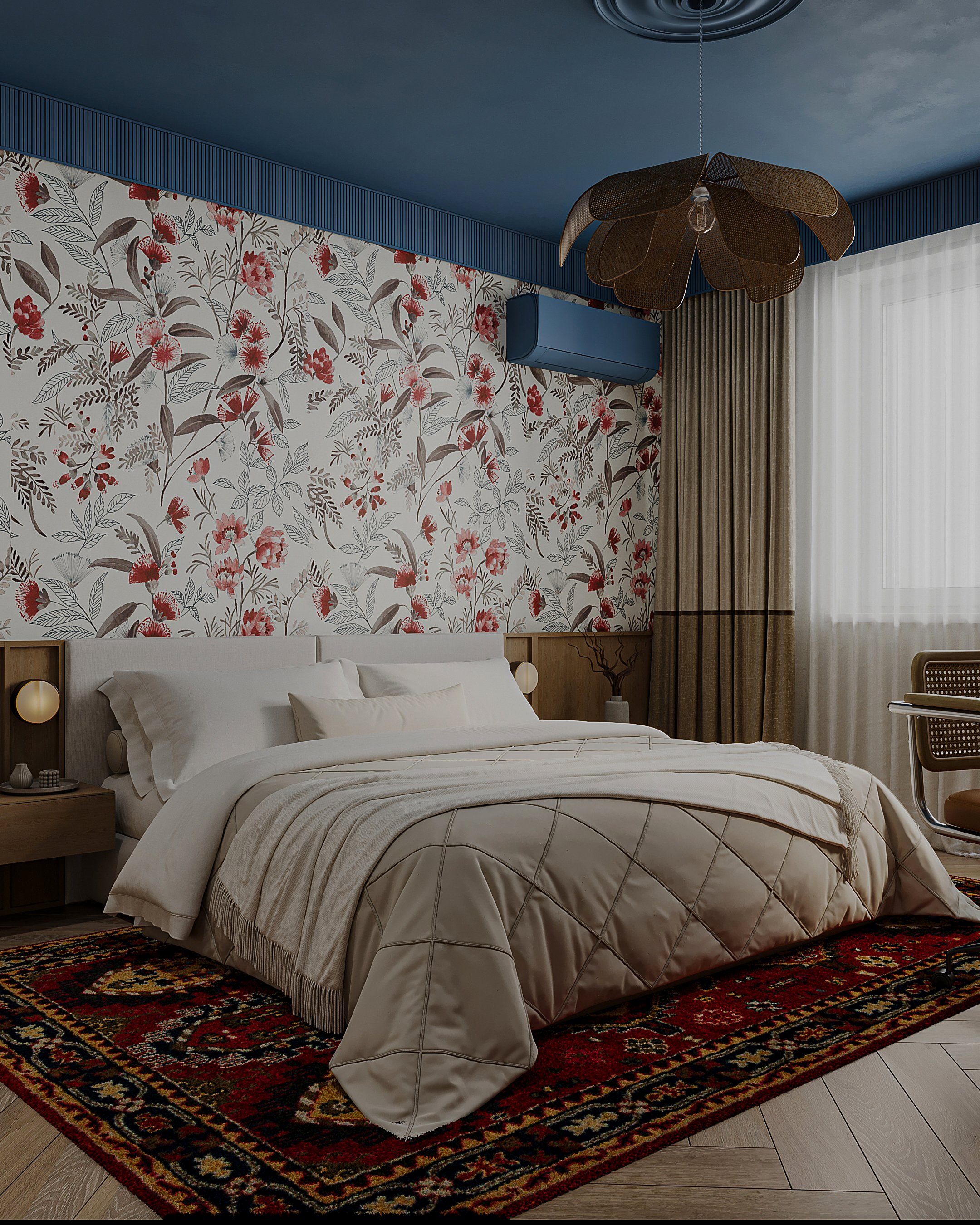 Зеркало без подсветки, обои жалко. Ковер шикарный!