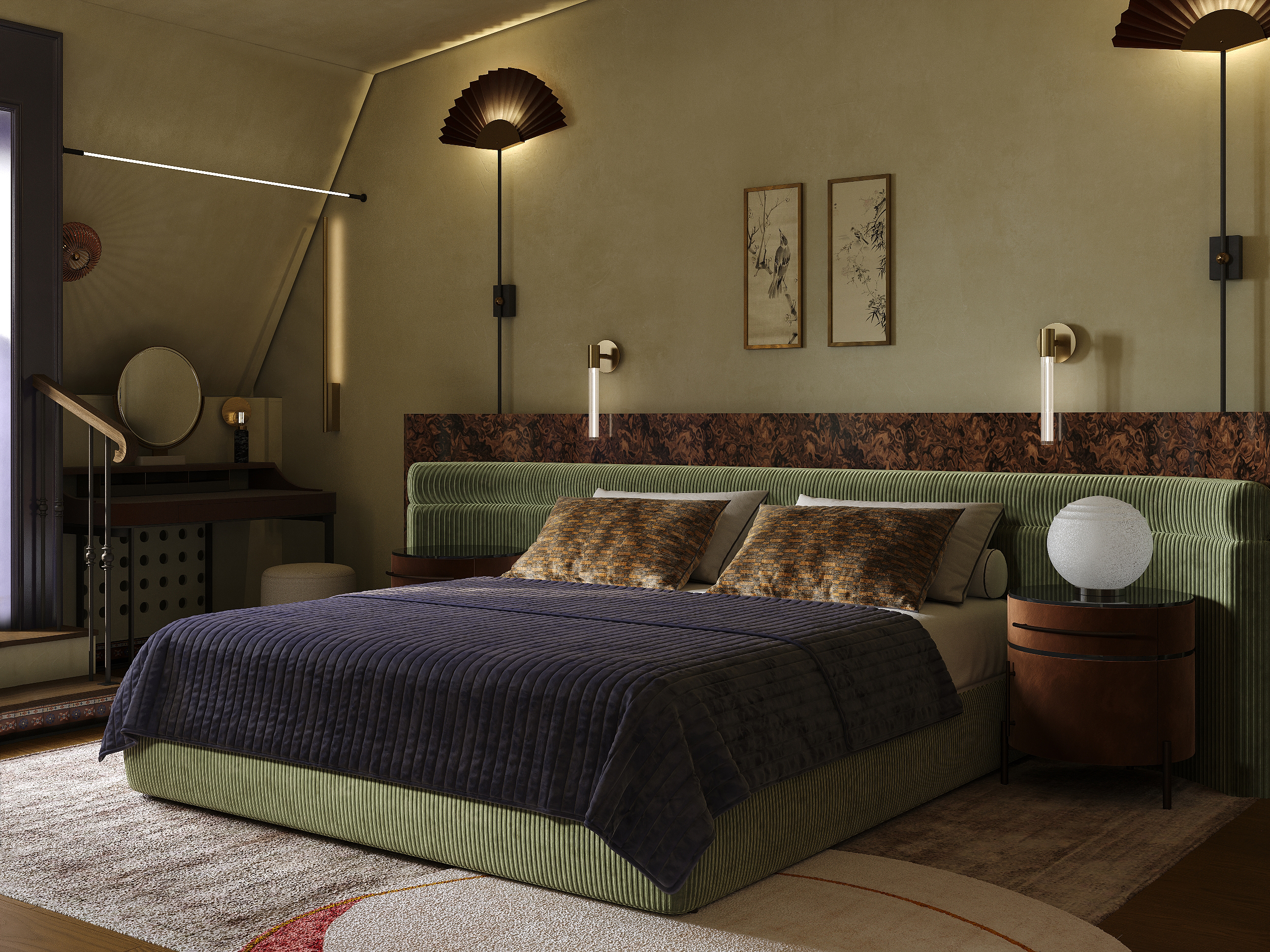 Хороший диз! Только не ясно это стена колеровкой окрашена?) Или это виниловые обои - так только клей на обоях засохший обычно бликует, в жизни не оч красиво.