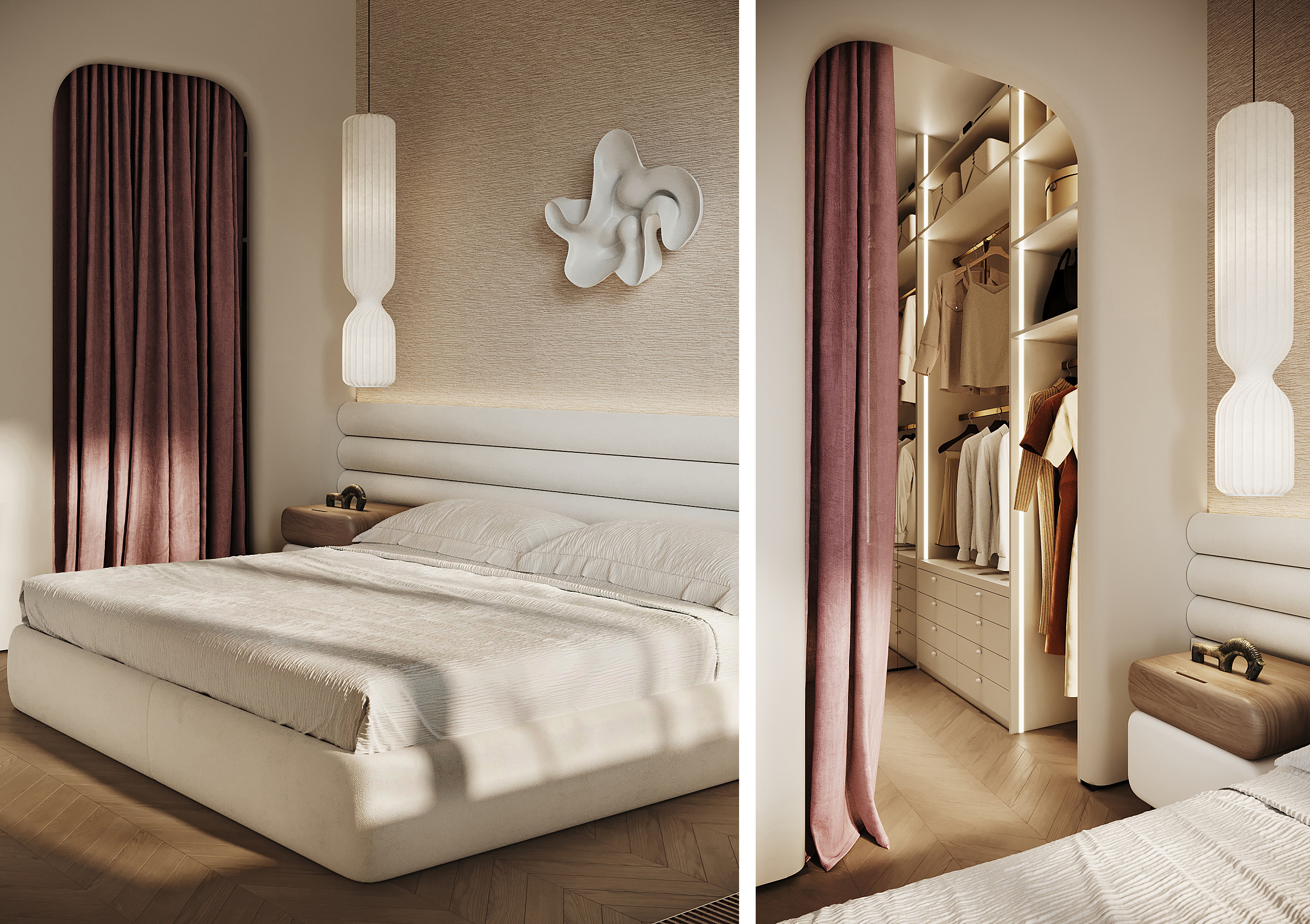 Визуализация мастер-спальни с гардеробом и санузлом из нового проекта West Garden Дизайнер: Анастасия Афанасьева KOSTA DESIGN Визуализатор: Анастасия Оверина Проект West Garden 127: