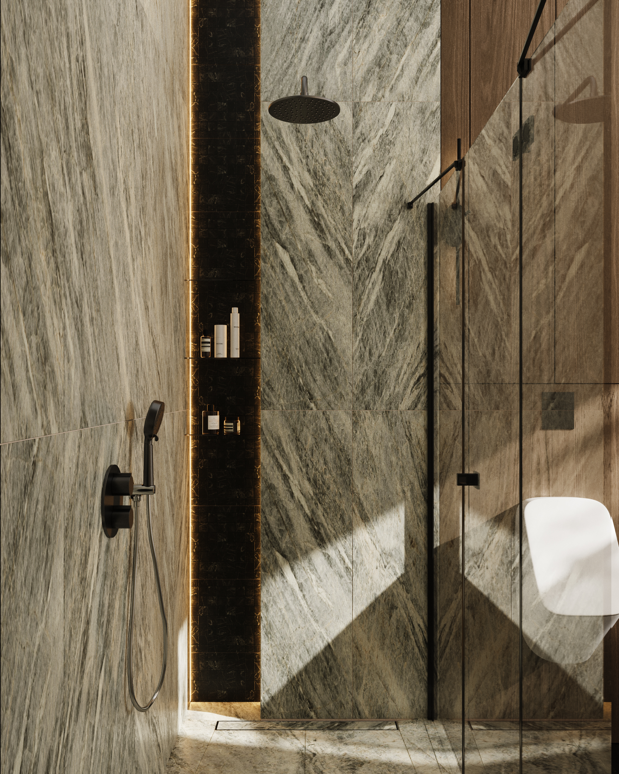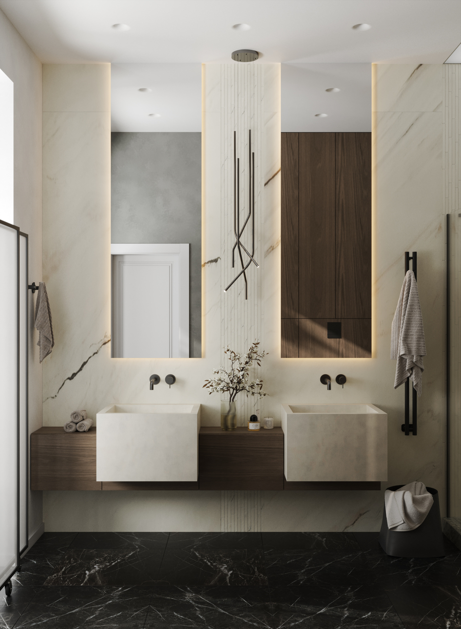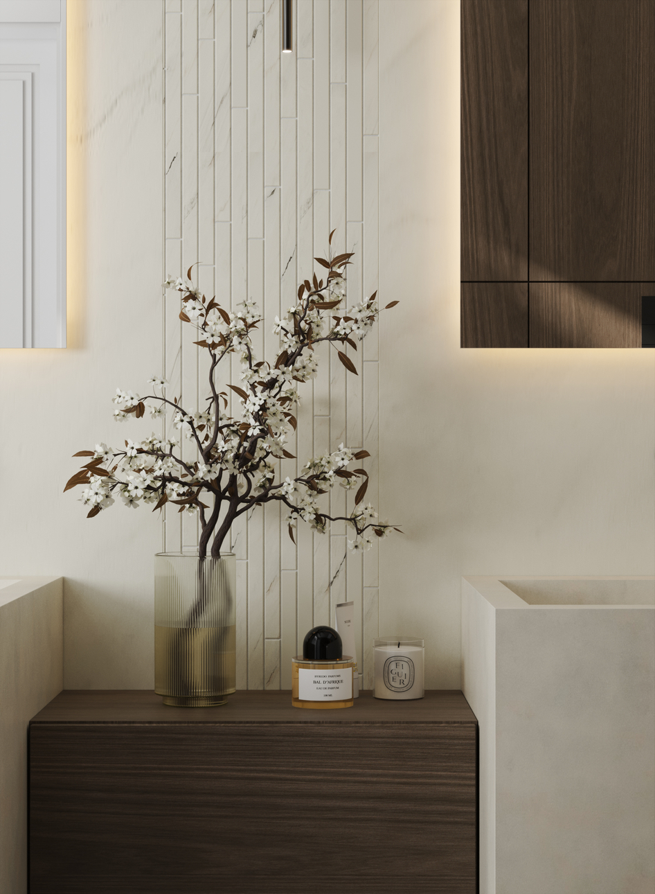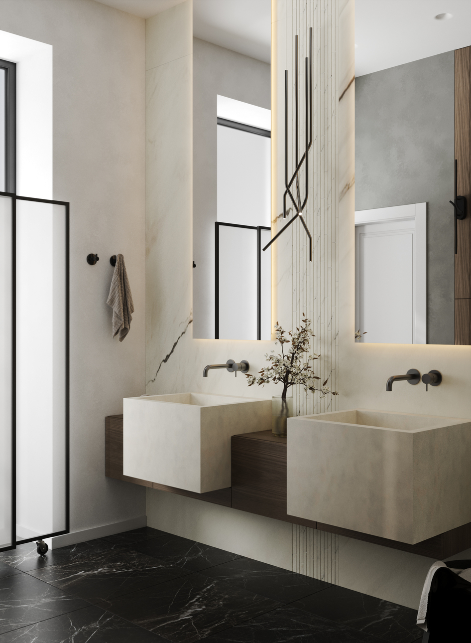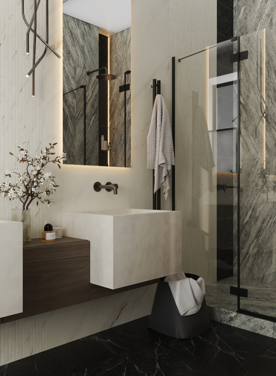 Визуализации для реального проекта санузла при мастер-спальне.