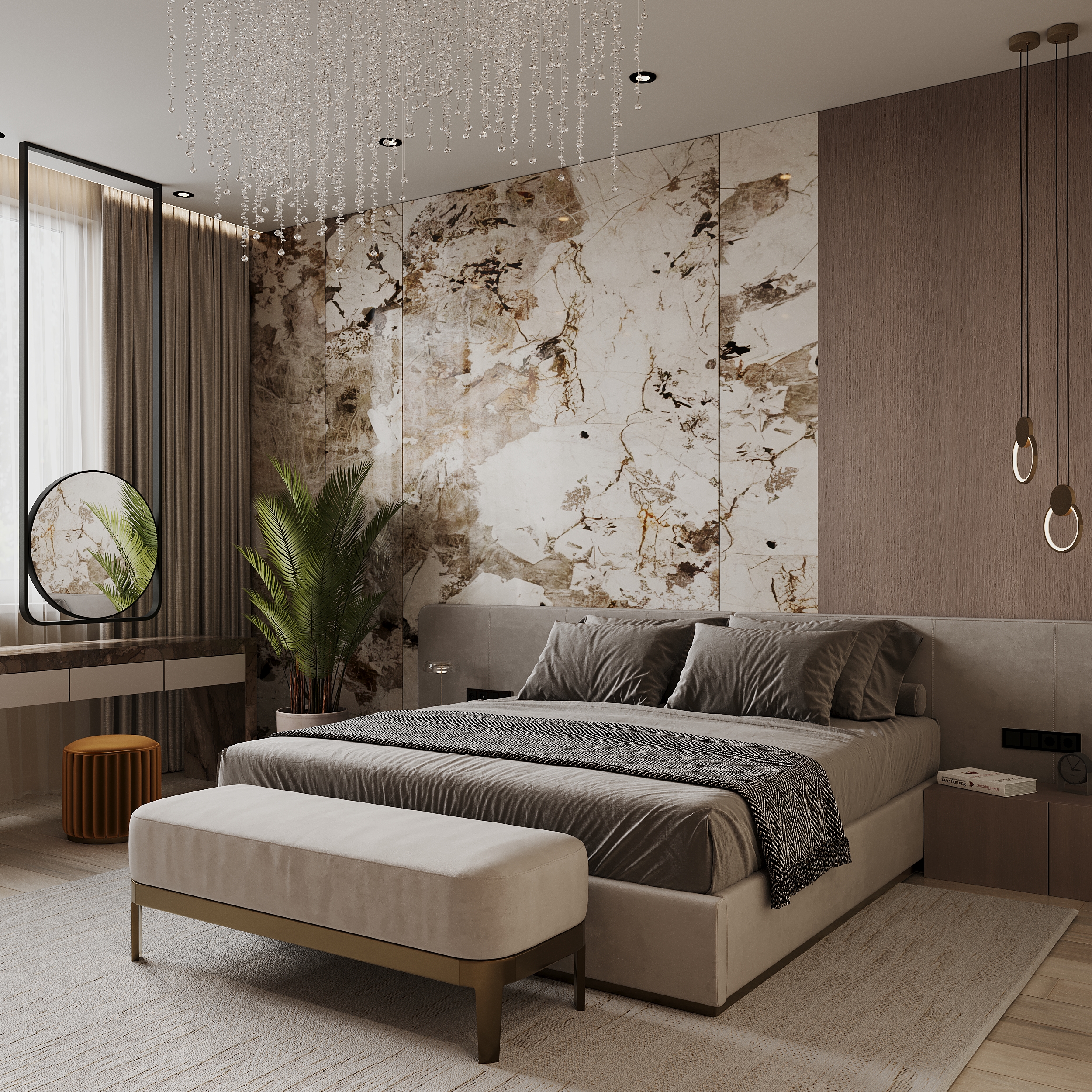 Реализованный проект мастер-спальни в загородном доме. Автор проекта дизайнер Валентина Цухло