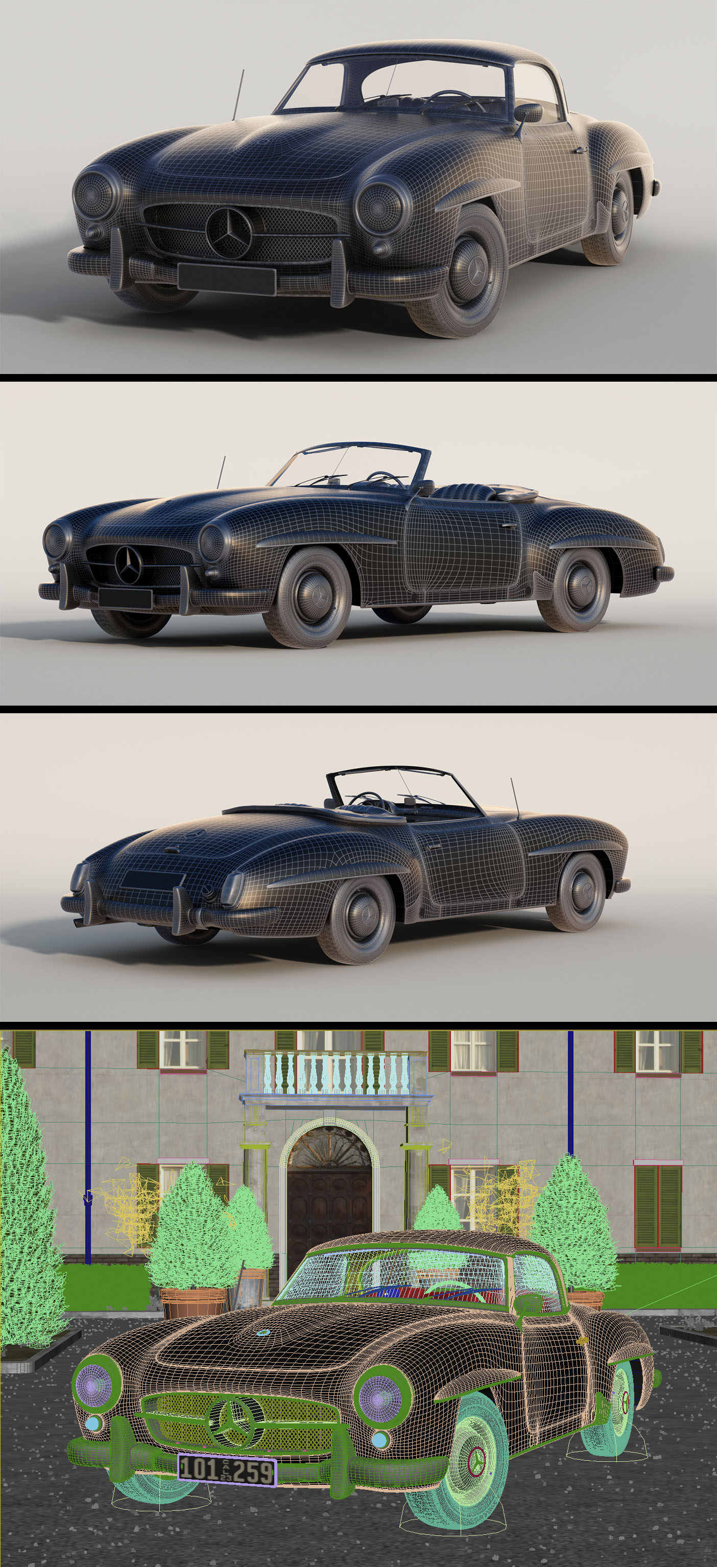 Друзья, всем привет! Хочу представить Вашему вниманию ещё одну мою работу Mercedes 190sl. На мой взгляд - это идеальное сочетание классики и комфорта. Я прям получал удовольствие во время моделинга и создания картинок.